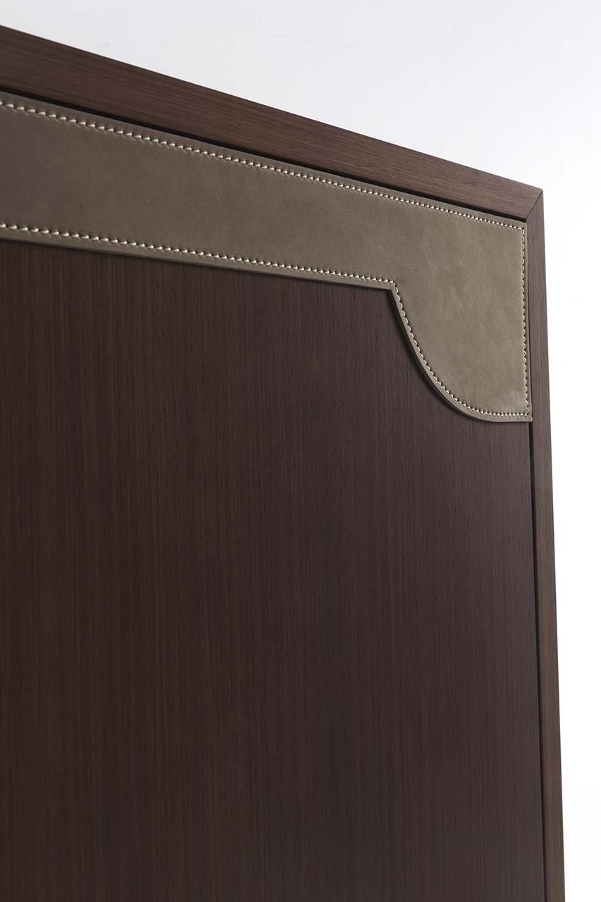 客厅集合项目的特点是精致的牛皮插入,几乎嵌在乌木