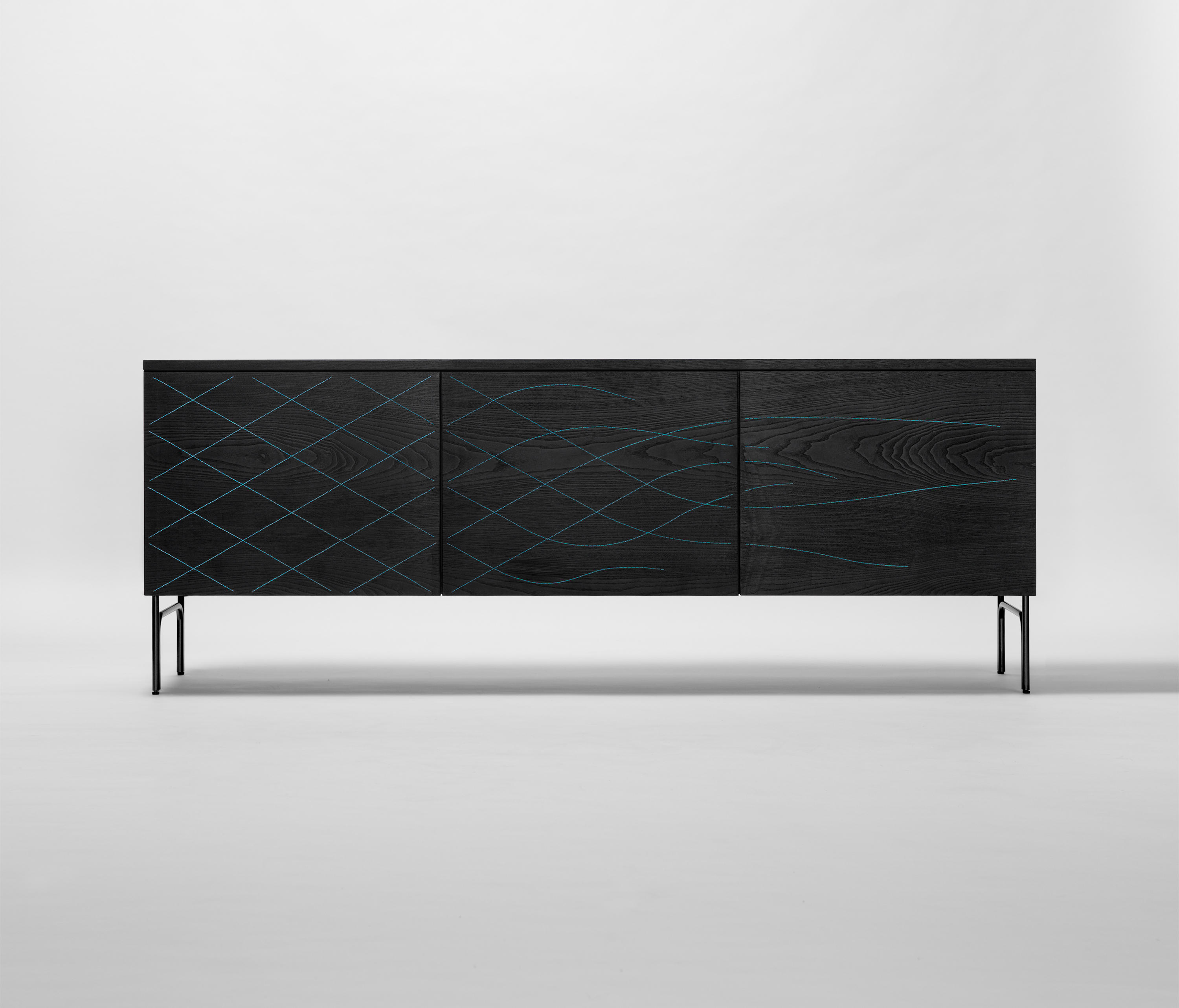 法格与布兰奇(Färg&Blanche)设计了一款功能齐全的柜子,带有简单的装饰图案。提供天然木材或黑色染色,并缝有不同颜色的线。