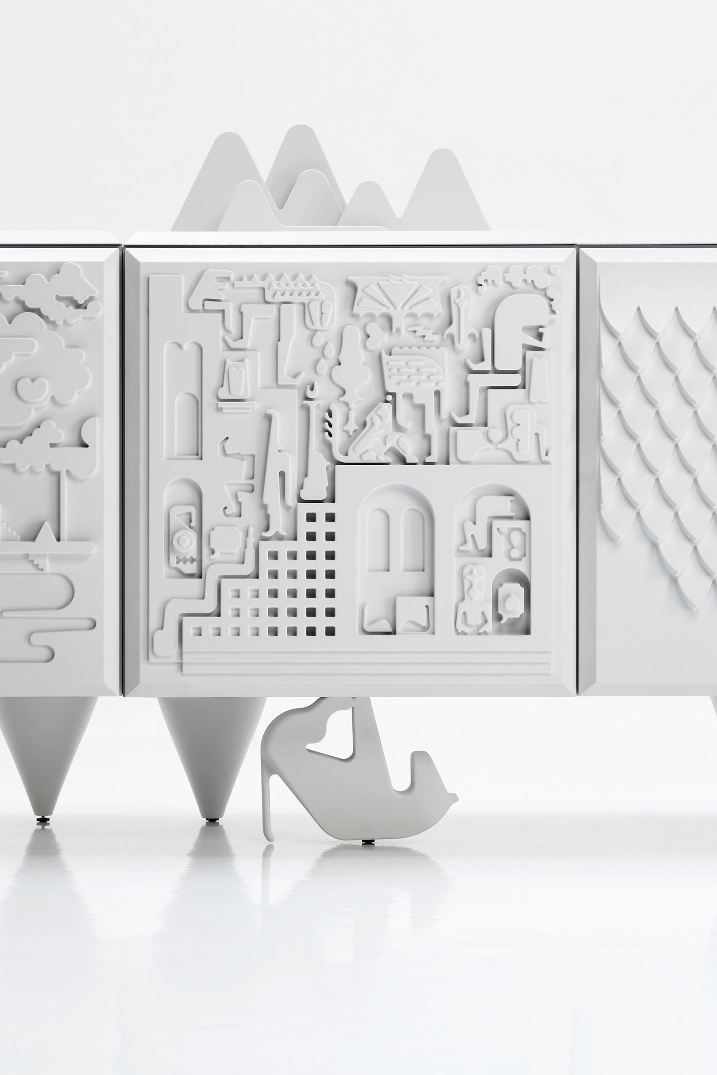 Antoine + Manuel设计了一件充满艺术和幻想的家具。黑色或白色MDF上漆的车身和搁板。整体式聚氨酯门的门,平顶和侧面。固体al木脚合为一体,用与门相同的颜色上漆和微纹理。很少有图形设计师(在这种情况下,是两个)进入家具设计领域。我们必须回溯很久才能找到它们这正是Antoine Audiau和Manuel Warosz所做的,这是一对非凡的巴黎图形艺术家,他们以Antoine + Manuel的名义签名。内阁Tout va Bien 他们为BD Barcelona设计公司推出的这个新系列而设计,它是应用艺术,象形文字,当代图形,幻想和乐观主义的令人惊讶的混合物。它的生产具有昨天的品质,却使用了当今的技术。颜色:白色和白色深灰色。