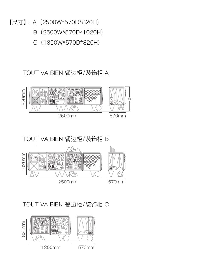 TOUT VA BIEN 餐边柜/装饰柜 系列尺寸/示意图