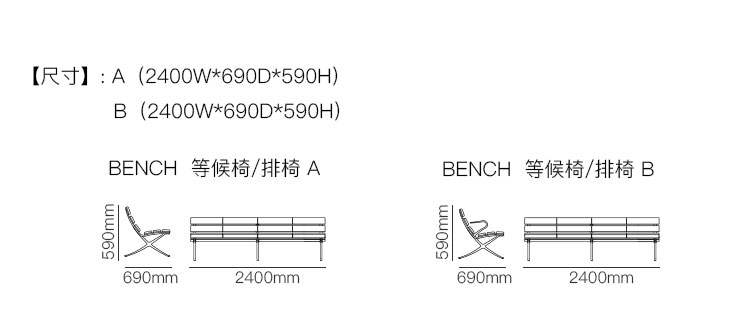 BENCH  等候椅/排椅 系列尺寸/示意图