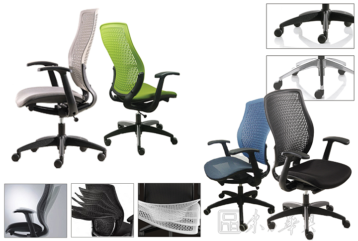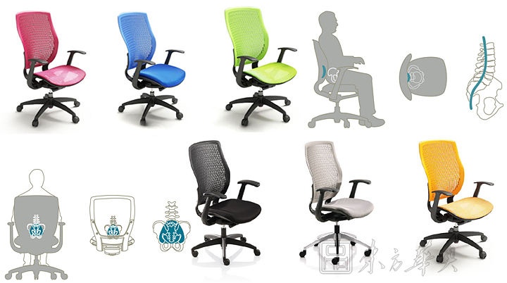 ※   高弹力材质的塑胶背板,附有人体工学的腰靠设计,可随人体的活动巧妙变形,并同时提供均衡的身体支撑,保持嵴椎的曲线。尤其对下腰部位的支撑,更健康的解决了久坐的疲劳和不适。