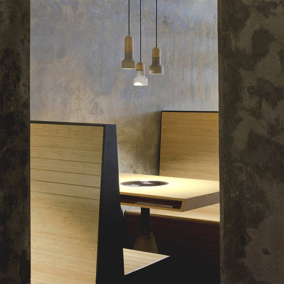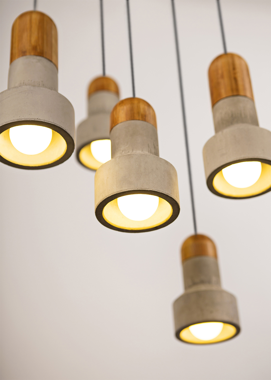 “且”已荣获2014年中国装饰混凝土设计大赛家居应用奖, CDA中国设计大奖设计至尊奖和亚太地区建筑和设计奖; 一件产品因为用心而产生精神,因为自然的材质创造出心情的平和,因为朴拙的美与人本性相通,才是一个面向未来的产品美学方向,制造的方式只是表象。生硬的水泥和温暖的楠竹,包裹住一团一团光,水泥的冰冷不见了。长长短短的竹段,像一群活泼的小孩探着头好奇的四处张望。又像远处一群高高低低的山峰。