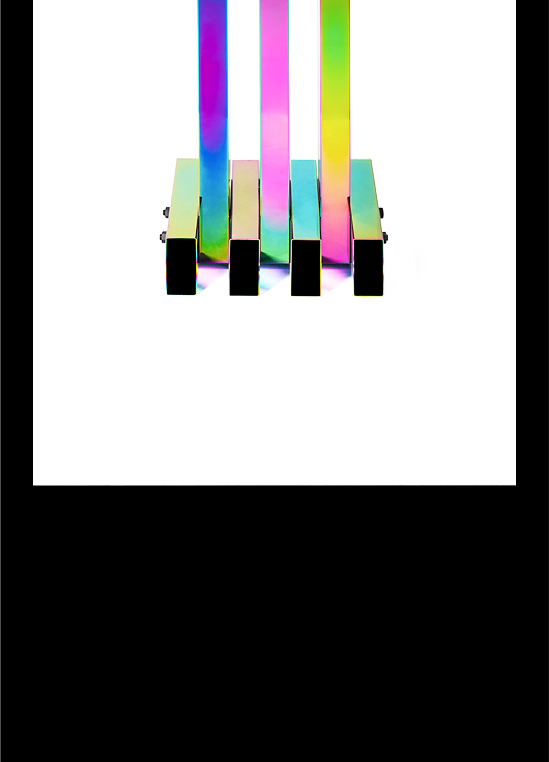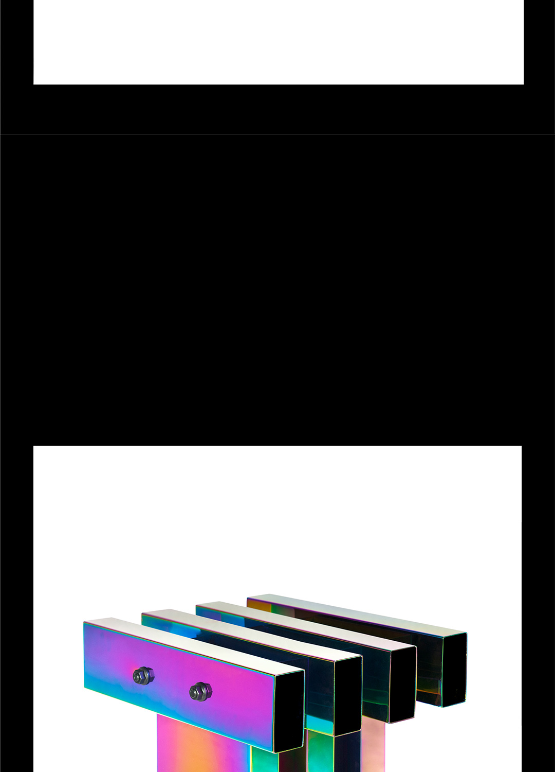 成熟常态的工艺完成规律性标准的矩形折面,与不可确定变幻成色的电镀技术,理性与非理性交集的不可控结果——不造,非常态。