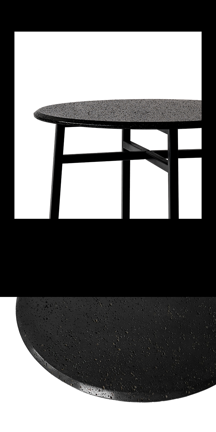 洞黑系列,洞悉秘密,来自地心的喷发。极想把洞石的芳华寂寞倾述出来,呈现于日常并使用它。尝试将洞石塑造各种形态,原材,呈浅灰色;亚光,颜色渐渐加黑;抛光,纯黑了。三种状态,魅力各异。深入践行,洞石的特性愈显,吸音、防水、防火、保温、隔热,耐酸碱、耐腐蚀、耐沾污、耐霉变,且无污染,无放射性。惊喜不断,质量很轻的洞石,居然强度很高,轻、硬,可塑性强,气孔式的通透,赋予了极简中的奢华。触目的拙,爱不释手。