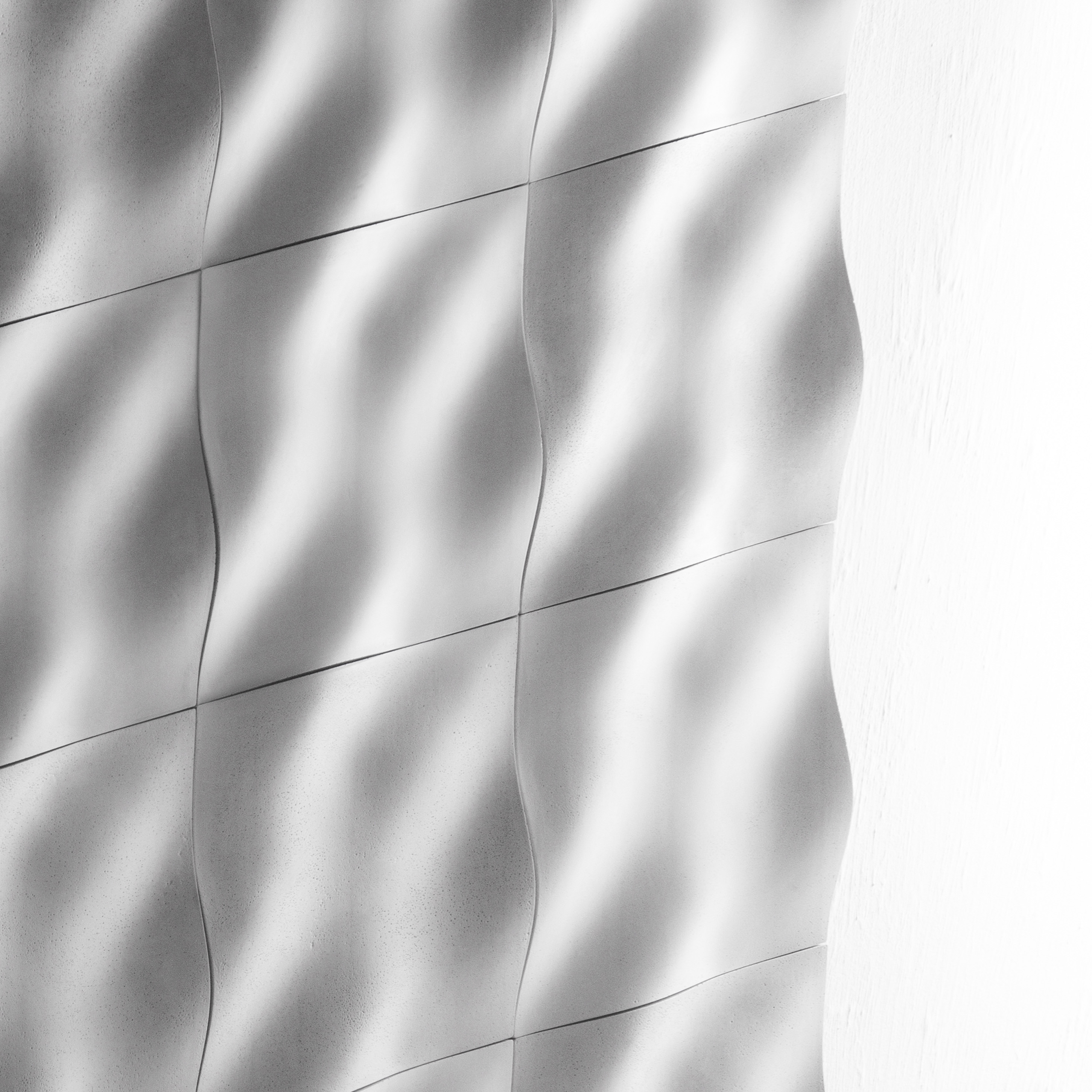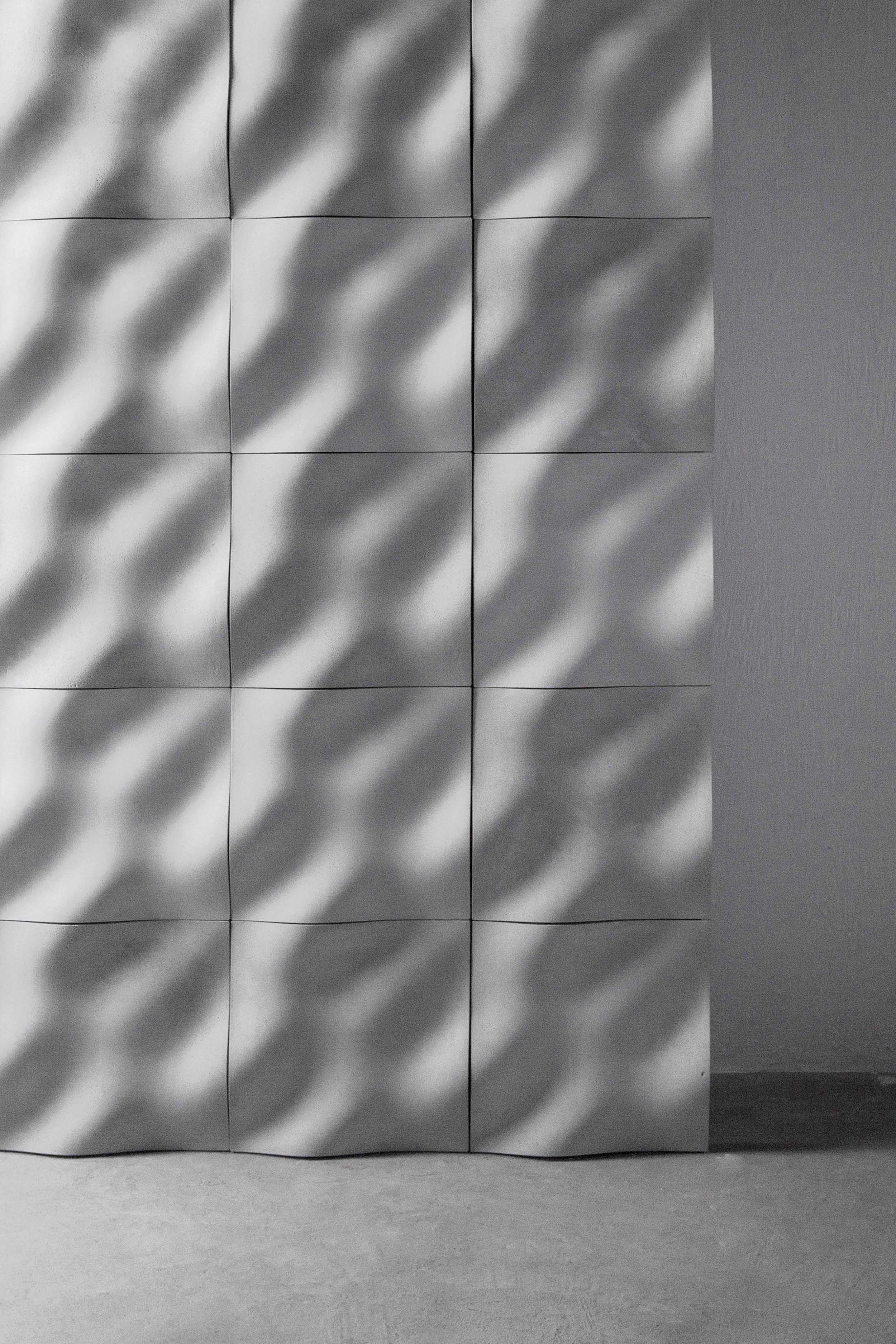 浪,以回收粉碎瓷片做40%的骨料,混合高强度混凝土浇注而成。生于世界最大的陶瓷国,不能不深深感受着陶瓷在这片土地上无处不在的应用和需求量。中国每年陶瓷产量占全球70%左右,而随着房地产业的不断发展,人们对陶瓷的需求更是日益增加。同时,这里的粘土资源也在千年如一日的开采中面临枯竭。满足高压的市场需求,缓解自然资源压力,混凝土装饰砖成为理想的替代品。高密度混凝土的特性使“浪”抗渗耐污,更易清洁。