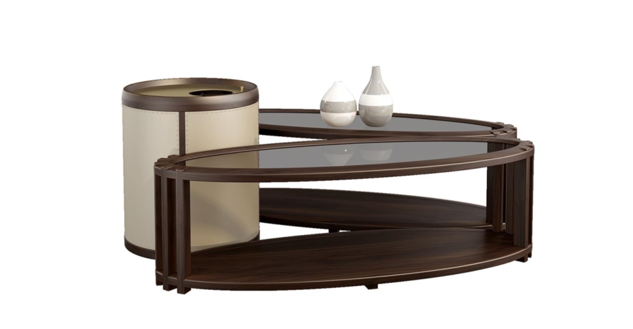 1.黑胡桃木与茶色玻璃的组合,通透灵动。 2.椭圆形茶几造型简洁,精巧简练,可根据家居需求随意搭配放置。