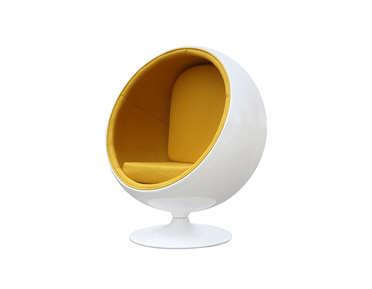 “球椅”是介乎于家具和建筑之间的一种产品,它好像“房间里的房间”,椅子很矮,坐进去,就仿佛陷入另外的一个世界,能迅速拥有安静舒适的环境,外界的噪音也被抵挡住。可以躲在里面冥想、放松身心,或者打私人电话。设计师阿尼奥就在自己那把原版的“球椅”内壁上装了一个红色的电话机,“球椅”提供一个相对私密的空间。椅子底部有轴,能360度旋转,坐在里面的人向外看,眼前的风景会随着转动而改变。这样,即使蜷缩在椅子里,也不会有与外界完全隔离的孤独感。就是这样一个狭小的空间,却带给了人们无比的安全感与舒适感,也就是这把椅子的诞生,掀开了“PODLIFE” 的篇章。"