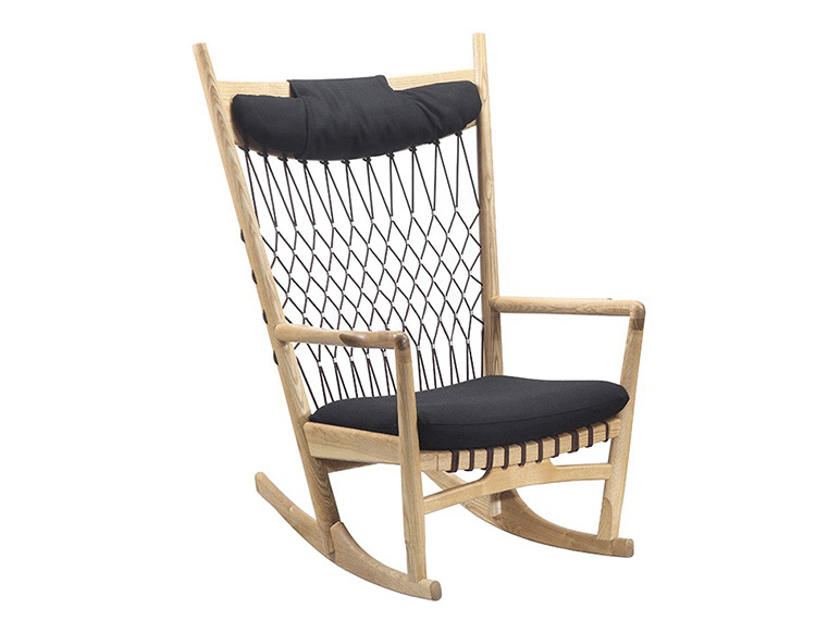 Rocking Chair(摇椅)是大师Hans J. Wegner设计的众多摇椅中的经典之作。摇椅具有简洁的线条,精准的的人体工学结构,是Hans J. Wegner在1944年为身怀六甲的妻子设计,扶手前端微微向外展开,是为让妻子方便起身。实木制成,轻便耐用,简约单纯,仍于潮流中立于不败之地,为Hans J. Wegner最受欢迎的经典作品之一。我们已经能从中感受到圈椅的影子。摇椅水曲柳制作,坐垫麻布软布(内部填充优质海绵),棉绳编织(有白色,黑色,棕红色可选)。