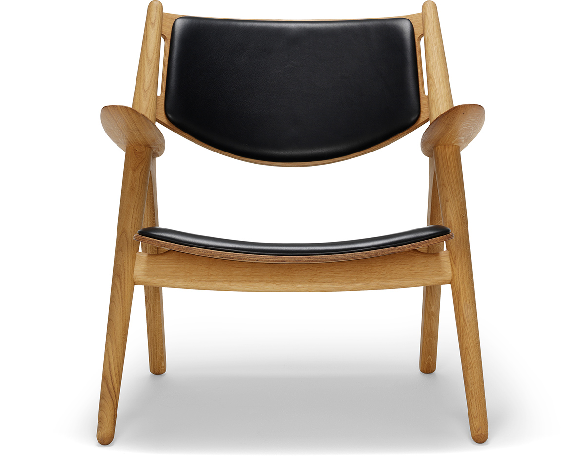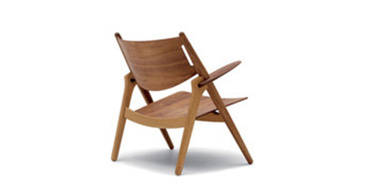 "Hans Easy Chair(汉斯简易椅)设计于1952年,2007年重新生产,是Hans J. Wegner的杰作之一。椅子的独特的造型腿形也是它最鲜明的特点。另外宽阔的扶手和较低的座板靠背都增加了这把椅子的舒适性。椅子可提供纯水曲柳实木框架、靠背曲木弯板版,也可添加织物或皮革坐垫及靠背。"