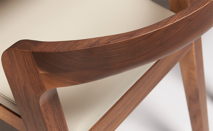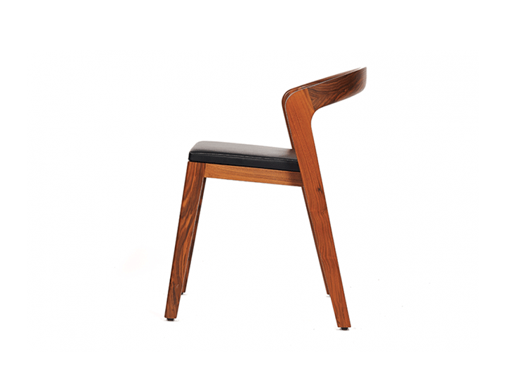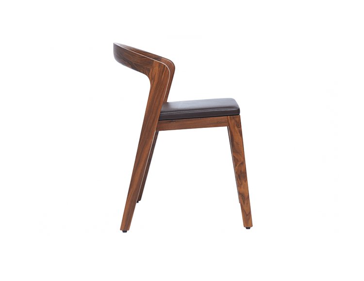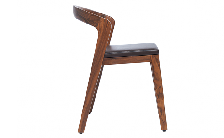 Elegant solid wooden chair with a unique contemporary design.Typical characteristics are:easy stackable,ergonomic,compact,luxurious,for residential and commercial projects.