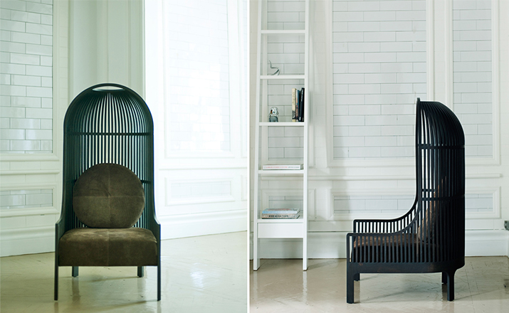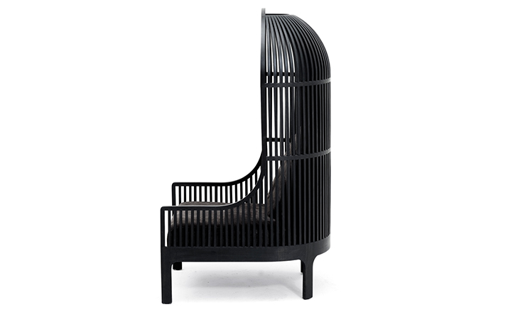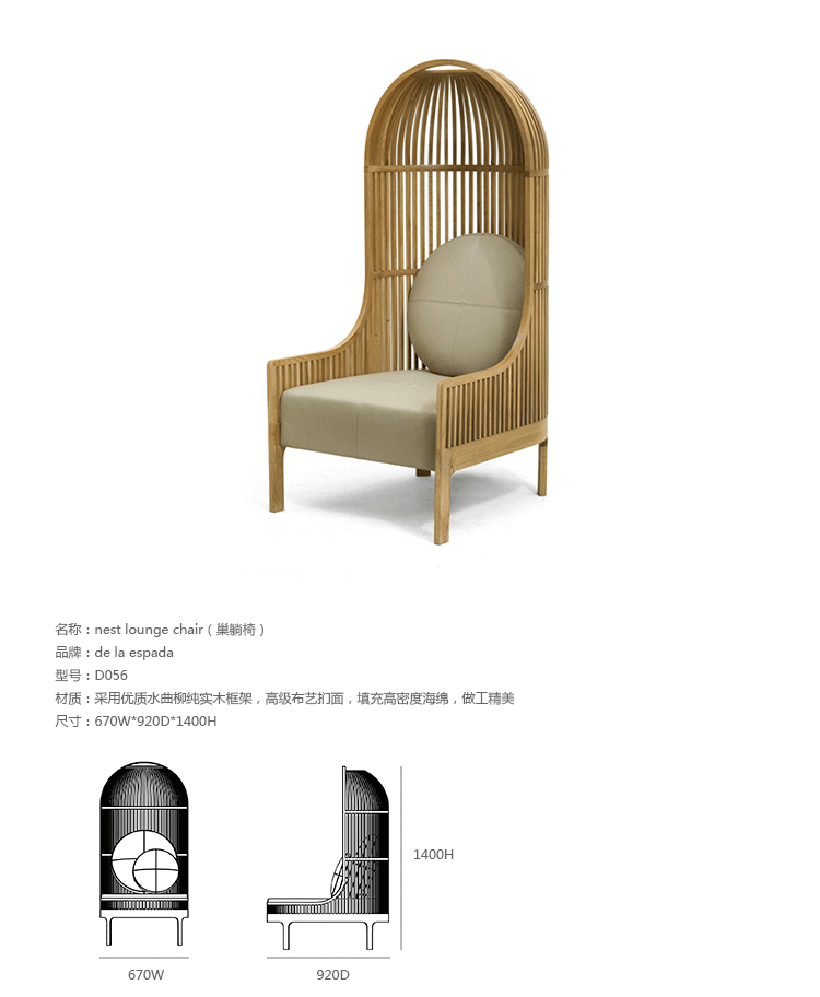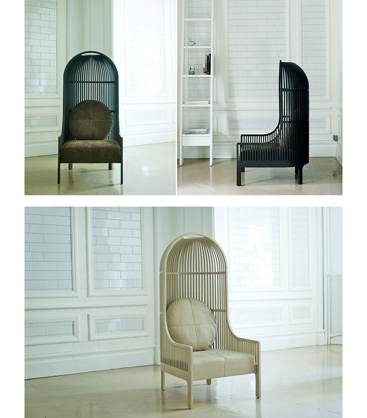 A unique seating experience.This lounge chair has a surrounding shell,making a cosy "nest" for the user. Nest keeps you close to your earliest memories.Whether placed in the middle of an immense desert or in a crowded lobby,Nest makes a statement.