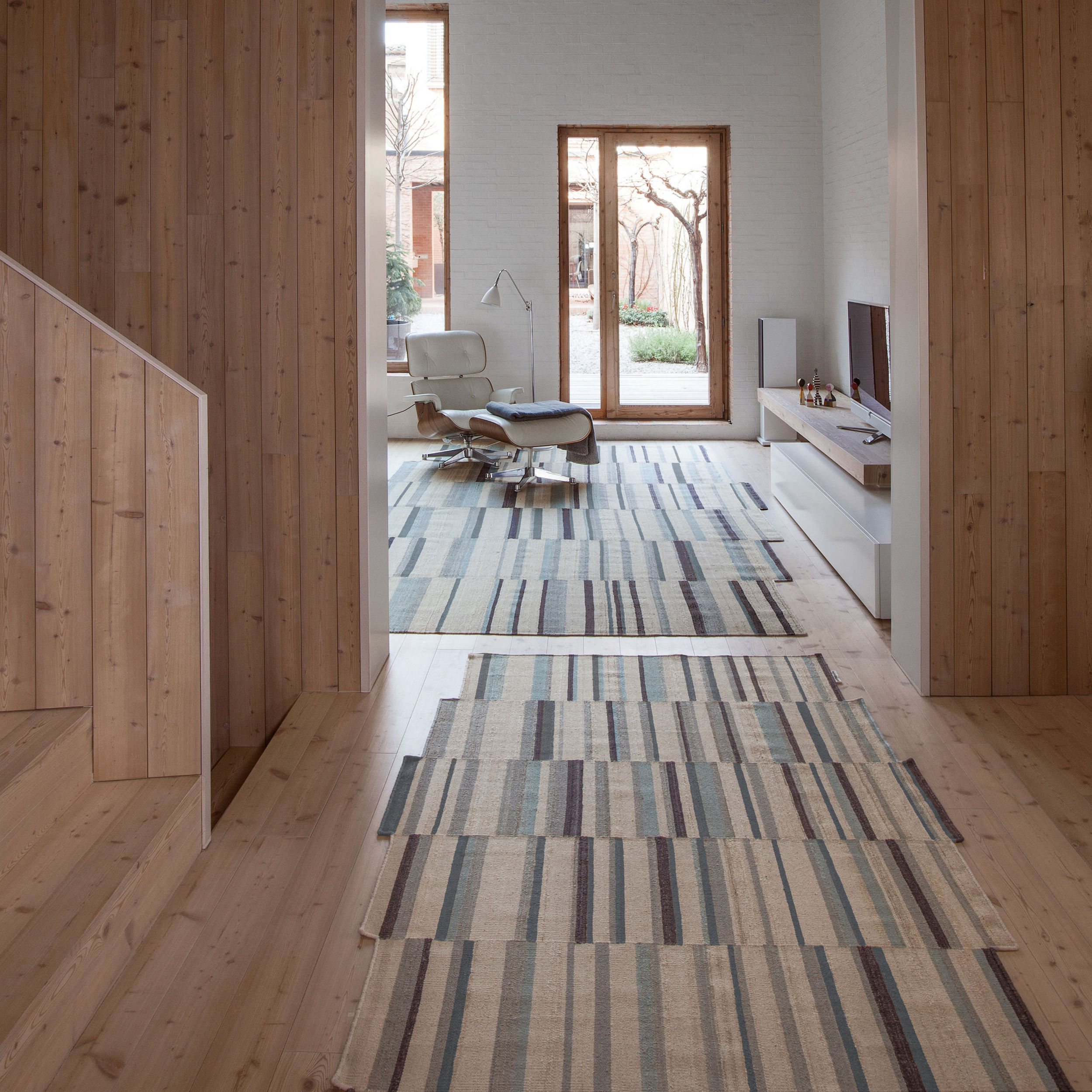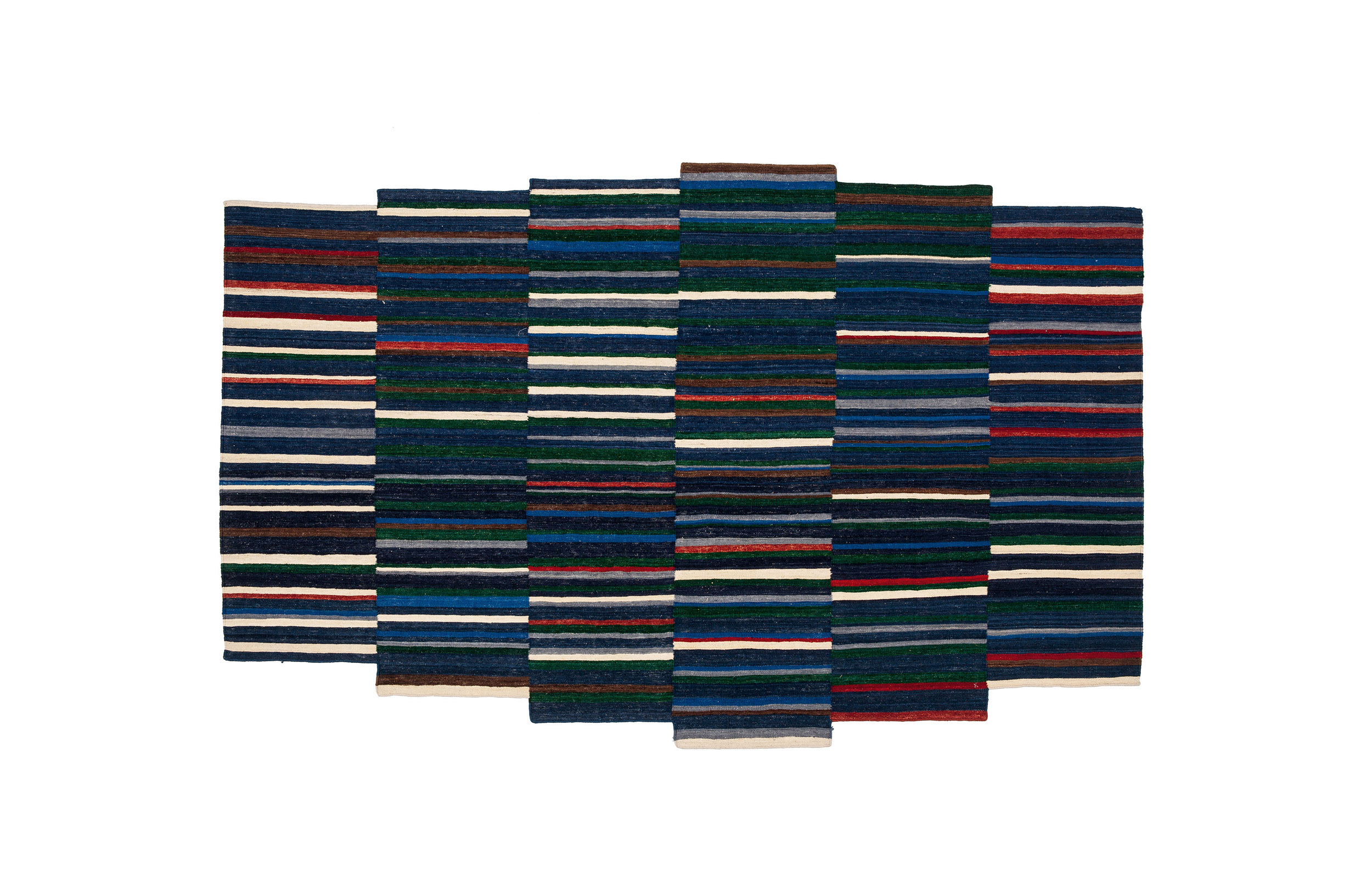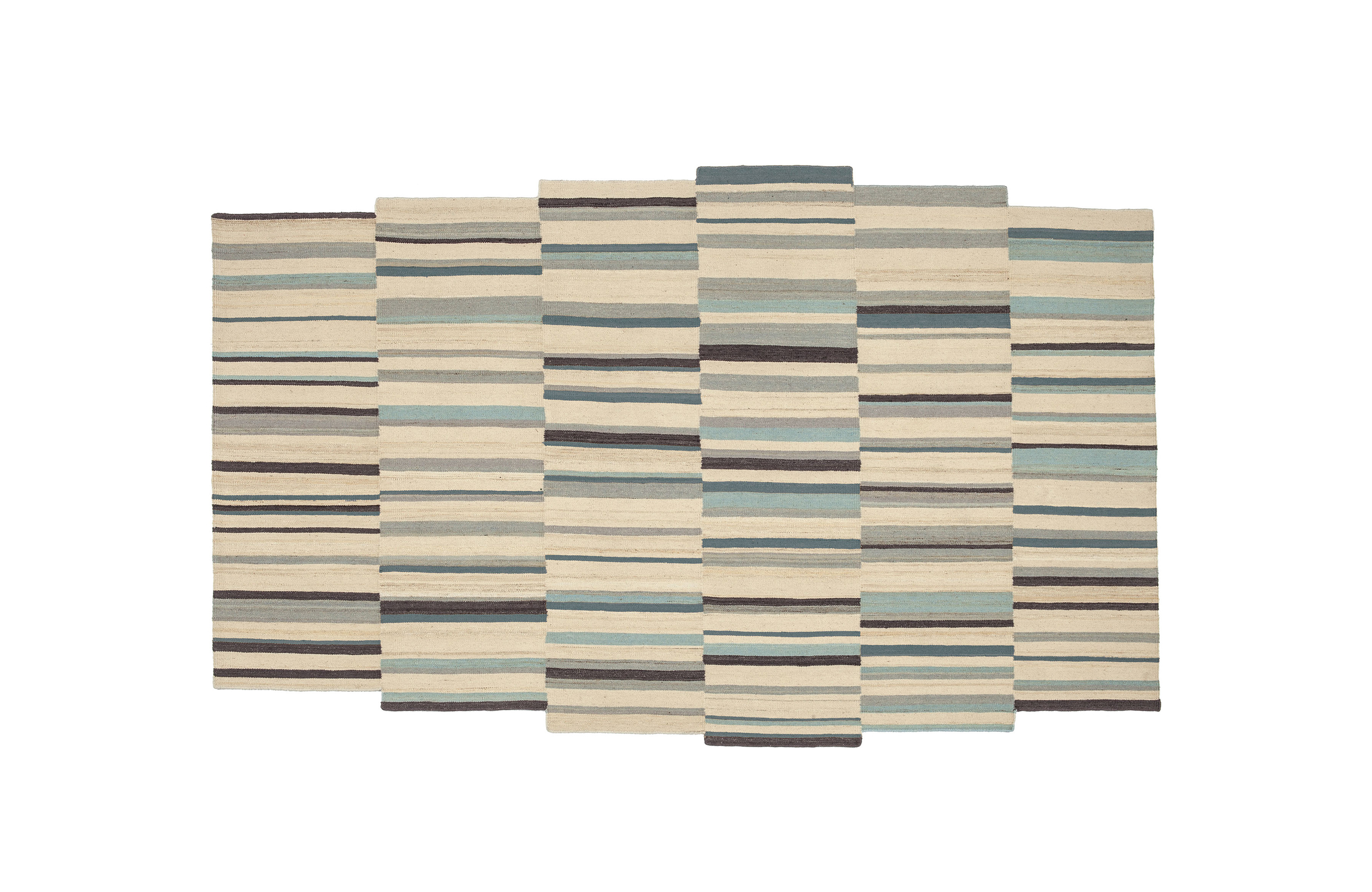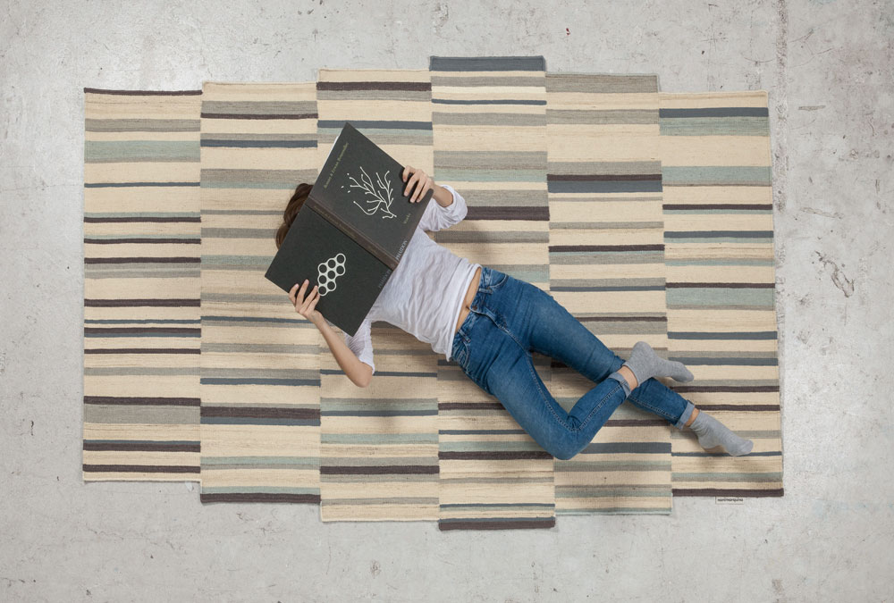 地毯通常被设计成一个图案分布的表面。然而,在格的情况下,模式被定义为一种生成地毯本身形式的建设性系统。彩色条纹的系统,在这种模式,形式和颜色以一种亲密的方式联系在一起,创造了一个不同的范围。——布洛埃克兄弟解释道。