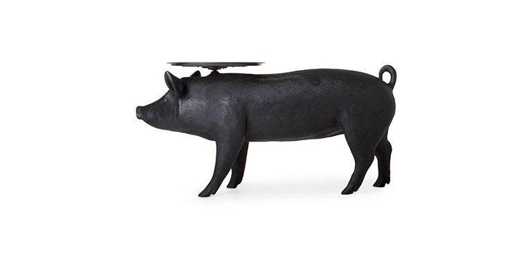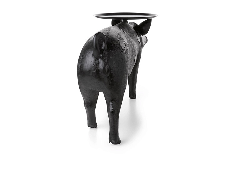 你想不想用一直原物大小的小猪台给你的客人提供饮品?猪台是Front设计的三套动物家具系列中的一个,他们设计的其他两款动物系列分别是马灯和兔子灯。Front设计团队成立于2003年,由四个设计师组成。所有成员都参与设计过程中从最初的讨论和想法阶段到最终产品生产。他们的作品建立在共同的讨论、探索和调查相关的不同主题的基础上。最终的产品常常通过在产品领域及材料组成间向参观者传达了一个关于他们设计经历的故事。猪台的托盘并不以对称的形式附着在猪上。托盘设置的角度可以调整的,且如果地面不平整还可以进行调整。猪台有着猪标志性、可爱的笑脸,颜色只有黑色可选。