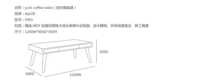 york coffee table(纽约咖啡桌)看起来是不是除了酷炫还是酷炫呀!胡桃木饰面与一个单一的灰色抽屉作隐藏遥控器和其他杂物。所以来吧,把这张富有艺术气息的咖啡桌书带回家,它已经读懂您的一切想法。制作采用精选MDF板基材胡桃木或水曲柳木皮贴面、实木脚架、环保油漆喷涂、做工精湛。