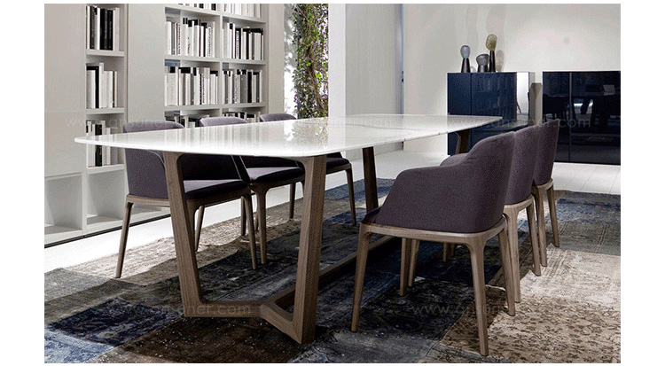 由Emmanuel Gallina设计的Concorde Table(协和式飞机桌)风格简约,通过简单的形式充分发挥了木料的自然特征。朴素优雅是Concorde长桌的独特之处,也是设计师的风格表现。长桌采用横纹核桃木和施佩萨特橡木,桌面有四种抛光和三种磨光大理石可供选择。