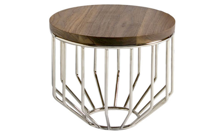 Blending sloping angles and taut lengths of bent metal are a modern interpretation of the wiry idea initially conceived by Warren Platner.The series is made up of a suite of wire tables,side tables and benches and fitted with luxurious solid wood tops.