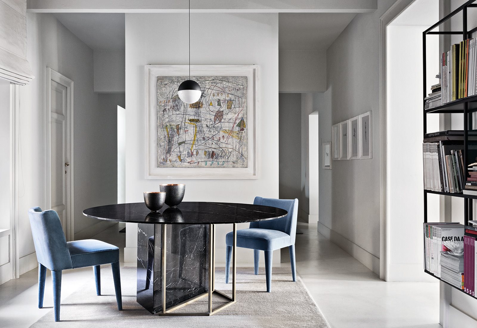 光结构化在黑色金属基地或古铜色的黄铜完成匹配固体体积覆盖着各种大理石、木材或漆完成,自由结合不同形状的顶部给生命一个相互作用的固体和空洞。