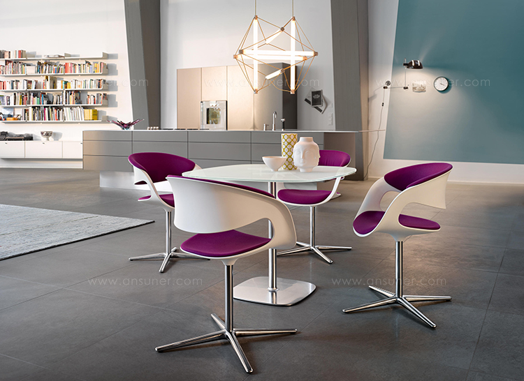 Lox茶几圆形或圆润的桌角,给人更安全的体验。无论是白色还是黑色玻璃桌面都散发着明亮的光泽。底座的形状是与桌面相呼应的的形状,与Lox系列座椅更为般配。同时适用于住宅区、办公室、餐厅或者酒吧。