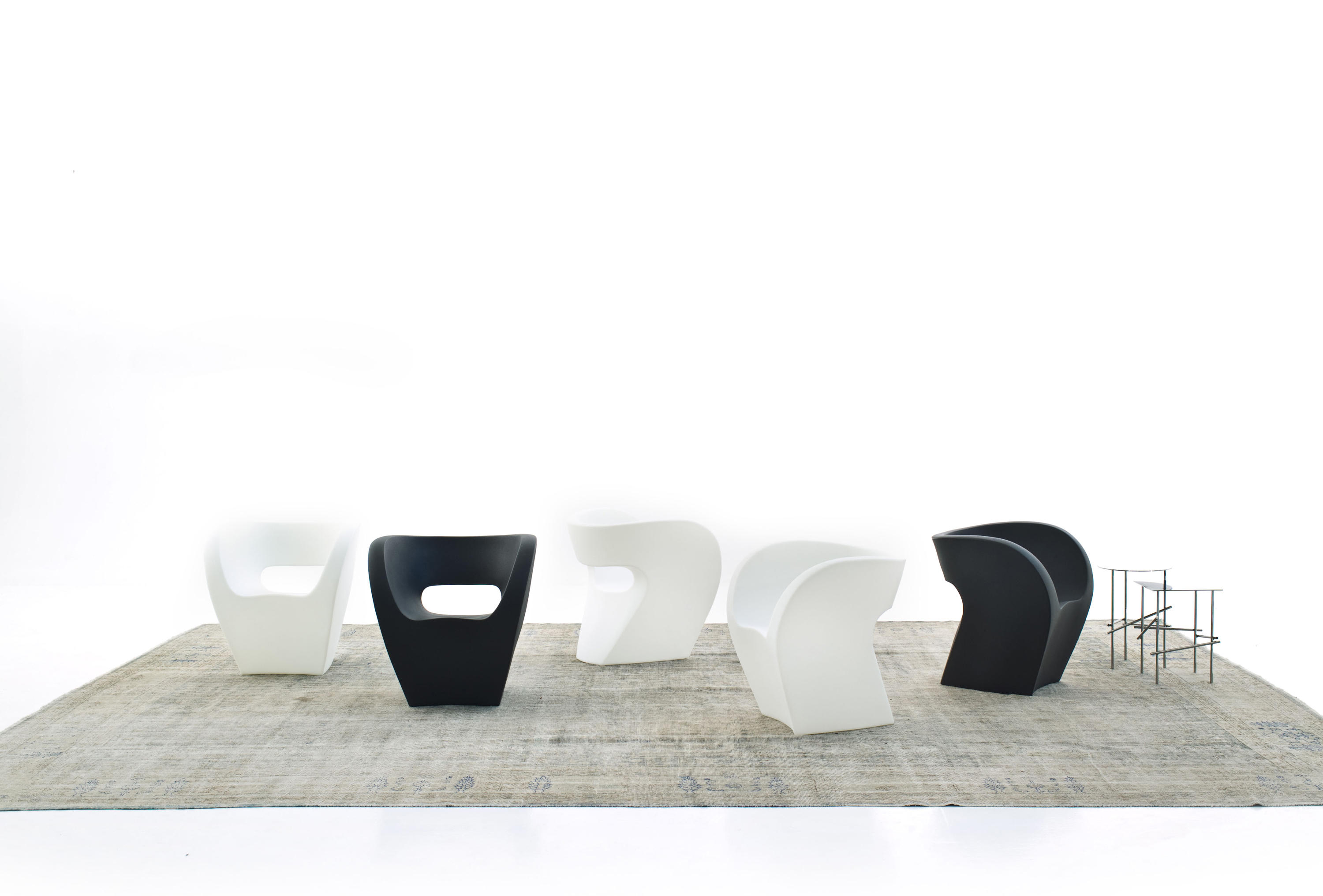 一条连续的曲线线条,一种不会将铅笔从纸上提起的图像形式。 最初是为雕塑提供灵感的'甜甜圈':压扁,并重新制作,使用讽刺超越通常的做法工业设计。然后是在内部玻璃纤维框架上的填充物和缝制对称的室内装饰品,揭示了设计的技术和表现优点之间的相互作用。它永无止境的线条是敏感而强烈的,表面和形式,身体和皮肤之间的完美协调。 织物伸入其周围的空间中,放大并增强了该物件的材质,而不会中断或压倒其流动性。
