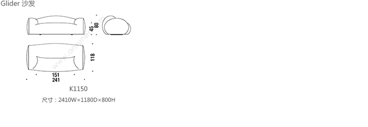 Glider 沙发 系列尺寸/示意图