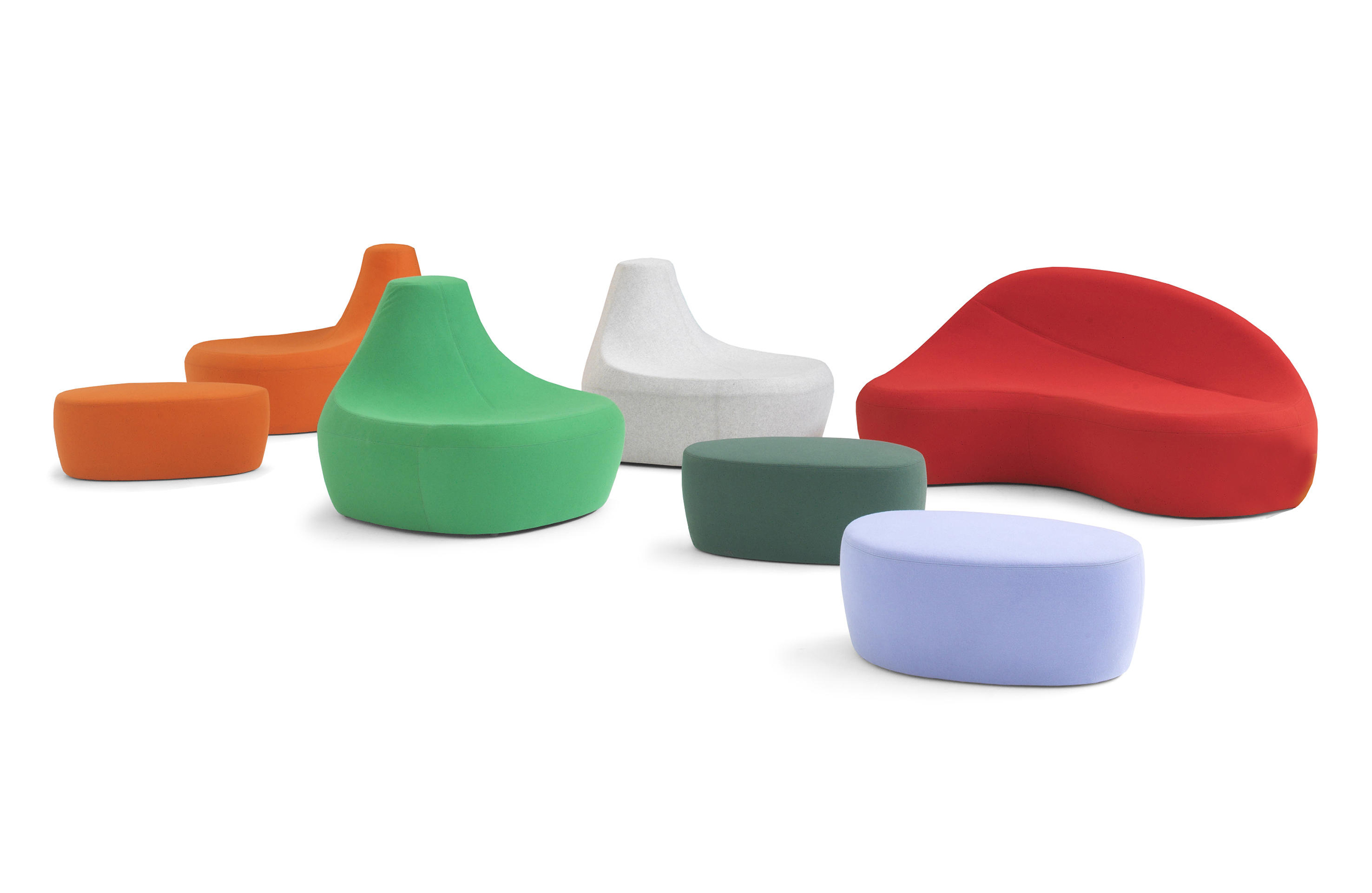 第一个Saruyama,它的地貌形态,一个非常抒情的物体,是由三个模块组成的,它们结合在一起,形成一个巨大的圆形岛屿,不同的一个从另一个中提出对座位的自由诠释。