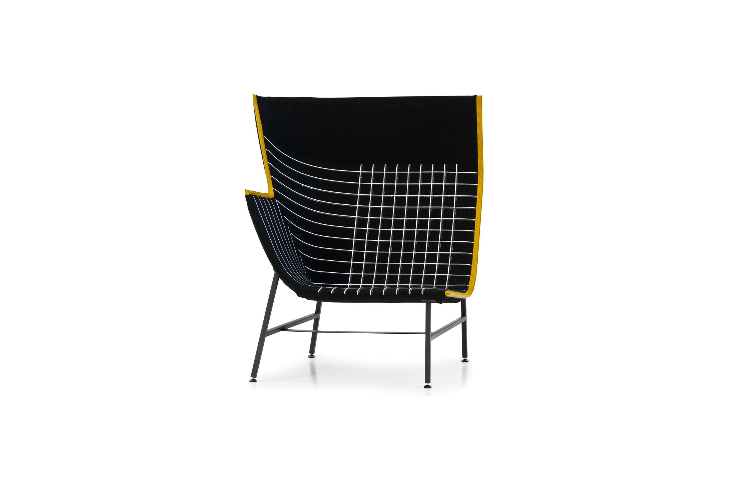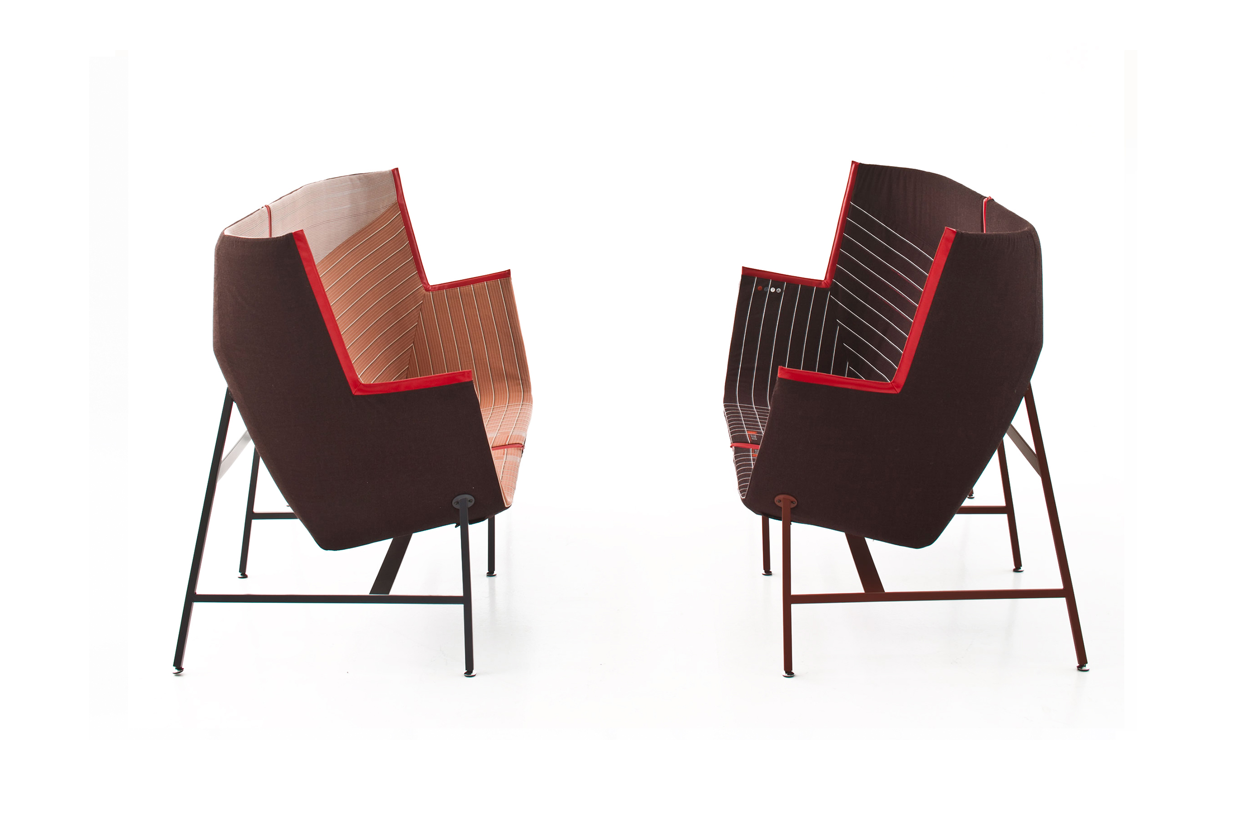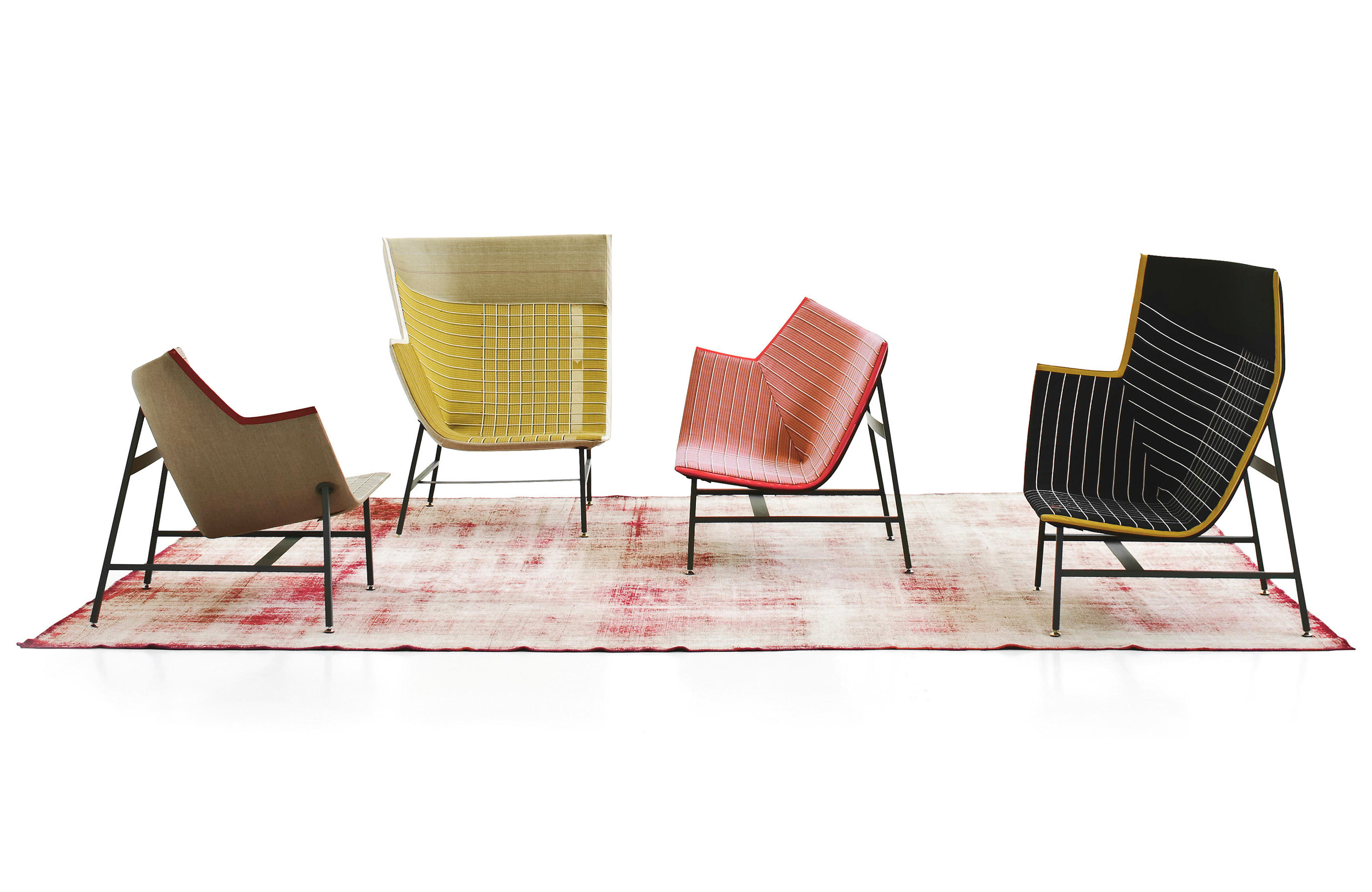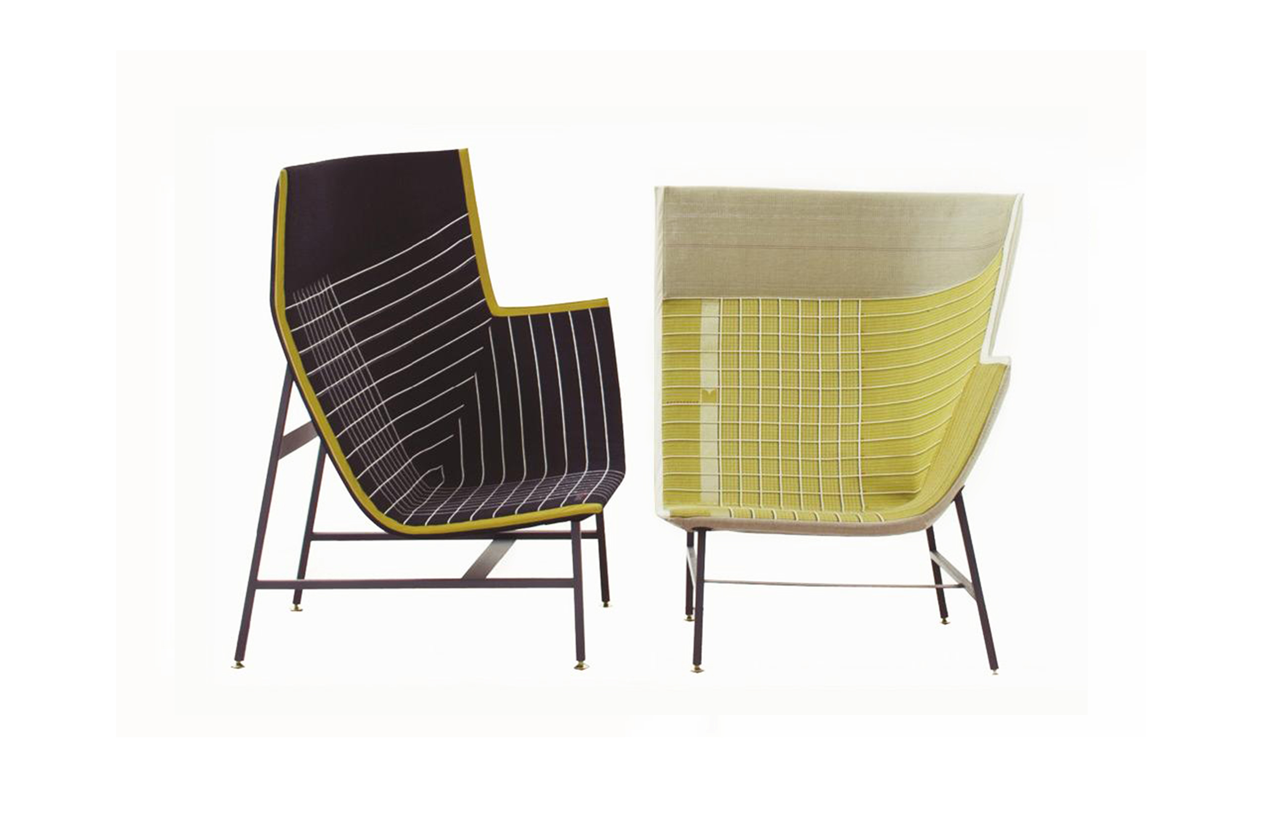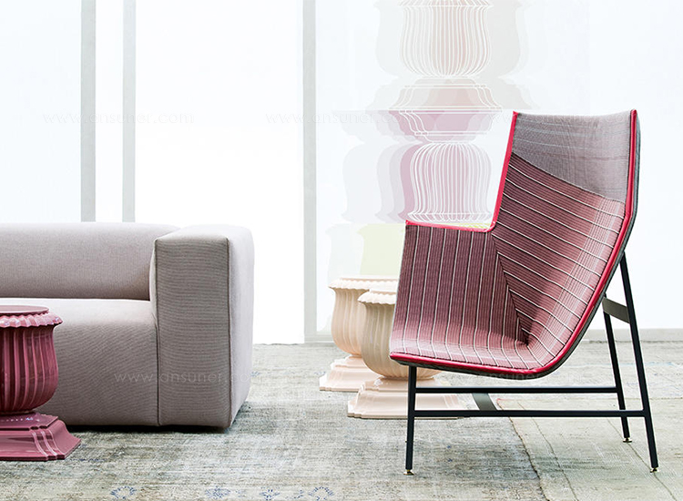纸飞机起源于一种基于图形纸的织物设计:它的形状来自于纸张的折叠和造型,作为对形式和结构的探索,创造出角度、线条和多边形。它看似简单,却需要高超的裁剪技巧:面料的线条必须与椅子的几何结构完美结合,这意味着没有犯错的余地。