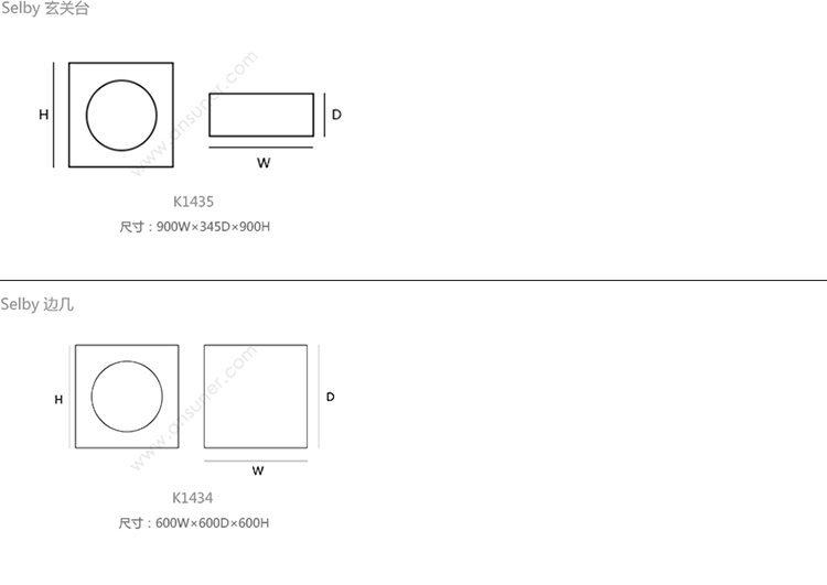 Selby 玄关台 系列尺寸/示意图