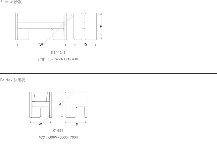 Fairfax 沙发 系列尺寸/示意图