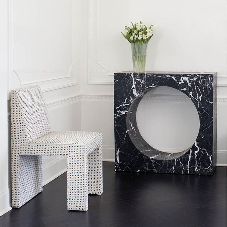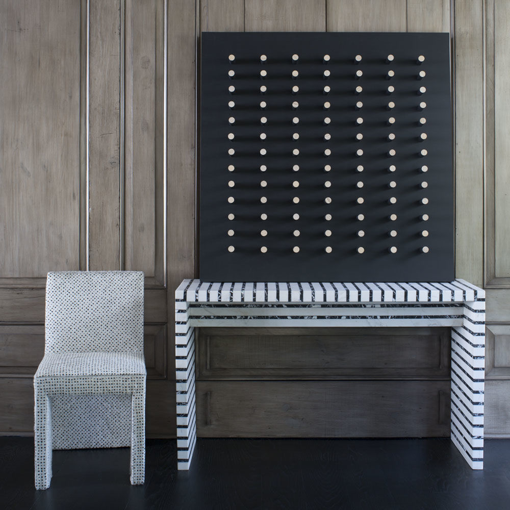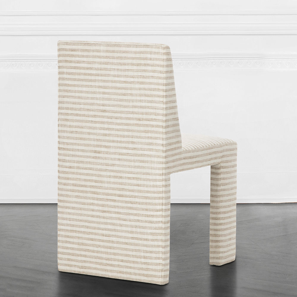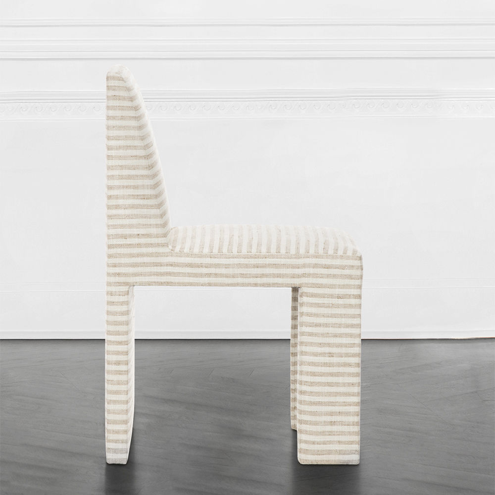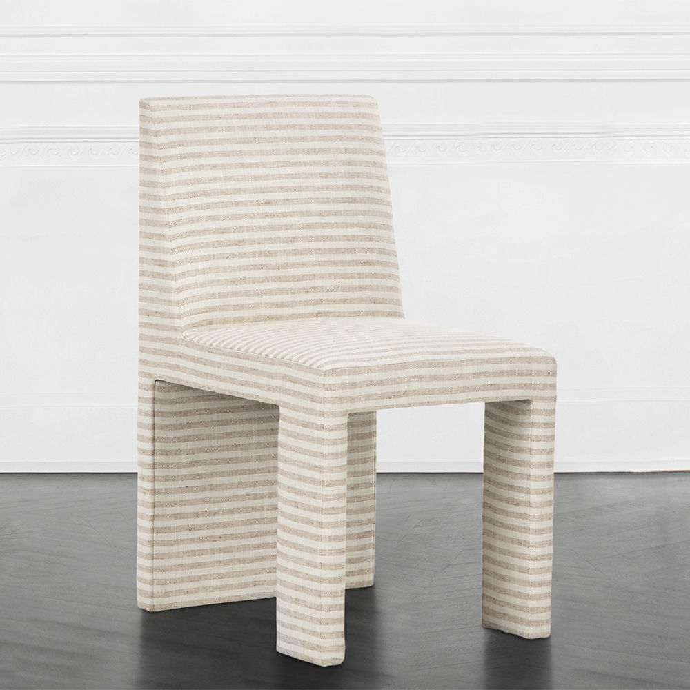 Thayer椅子是第一个完全软垫的餐椅,具有简单的图形魅力。 宽阔的前腿和坚固的后背为这款舒适的用餐或偶尔的椅子增添了建筑精神。 硬木框架采用双层细木工制成,可延长使用寿命。