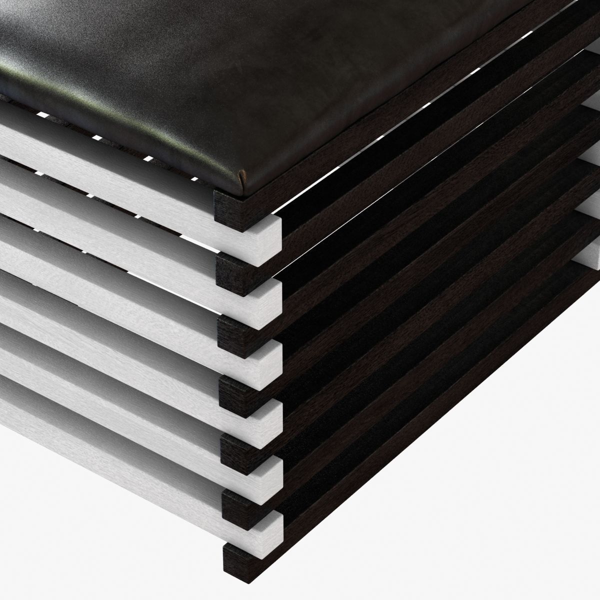 Hauser Ottoman的高对比度,交替的黑檀木和漂白胡桃木板条形成了现代,通风,雕塑般的外观,展示了纹理皮革定制的座垫。 这些凳子可以组合在一起形成一个休息区或矮桌。