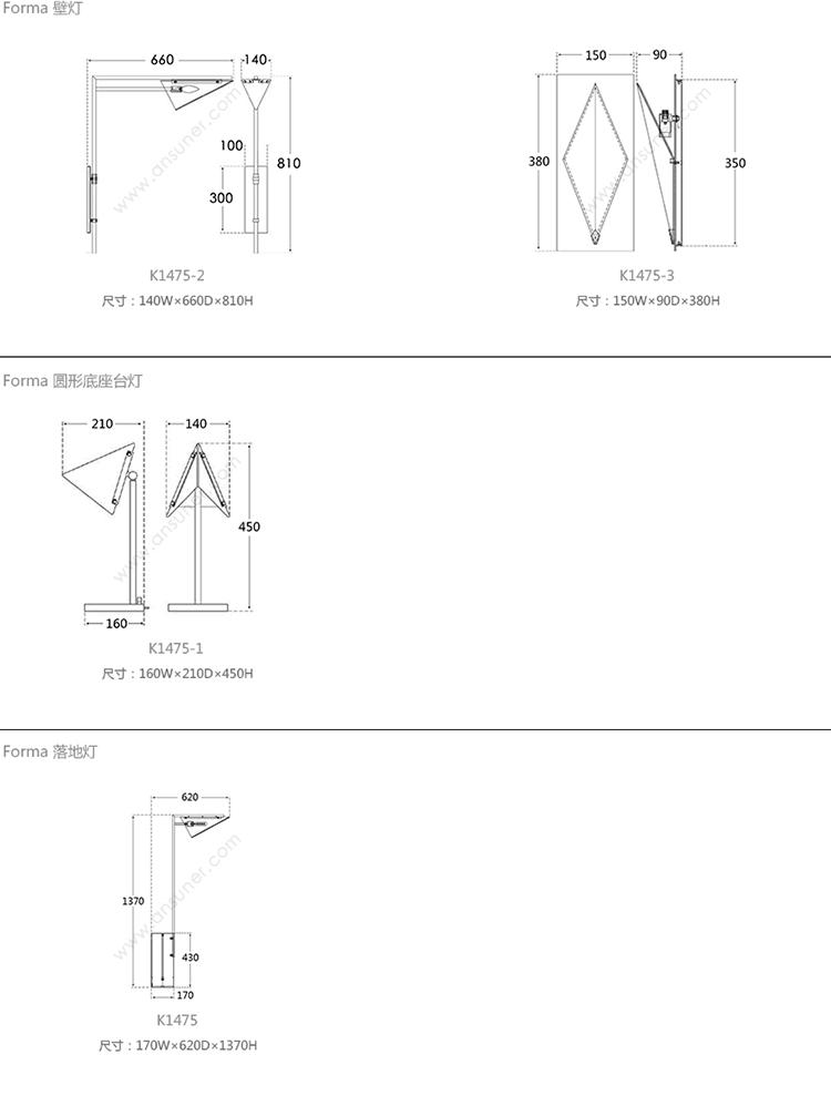 Forma 壁灯 系列尺寸/示意图