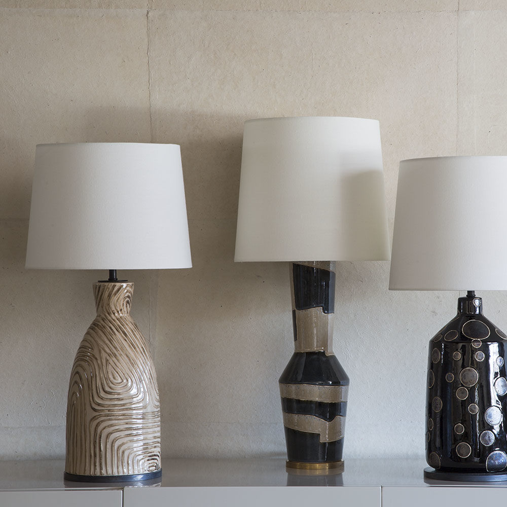 Effie台灯具有标志性的手工细节,灵感来自于Kelly对富有质感的物质的亲和力。 崇高而精致的Effie台灯采用白色亚麻色调。