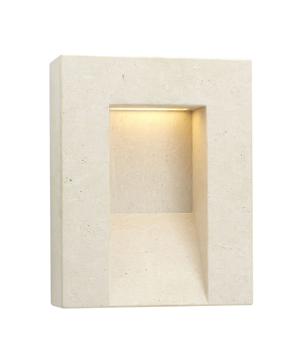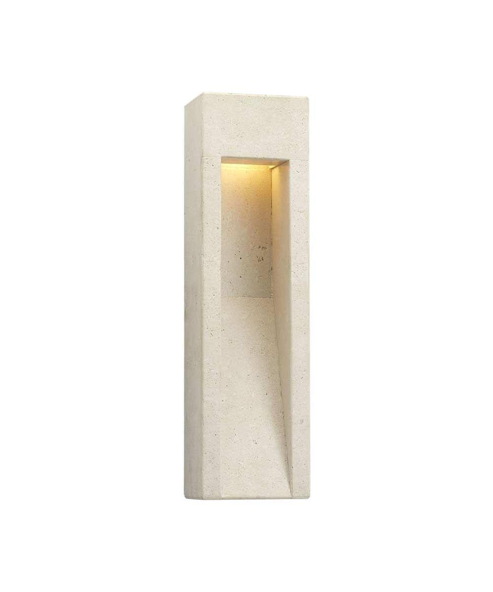 Tribute中型壁灯采用天然石灰华的干净建筑线条,雕刻品质由单一石头雕刻而成。 这款湿式壁灯非常适合室内和室外安装。