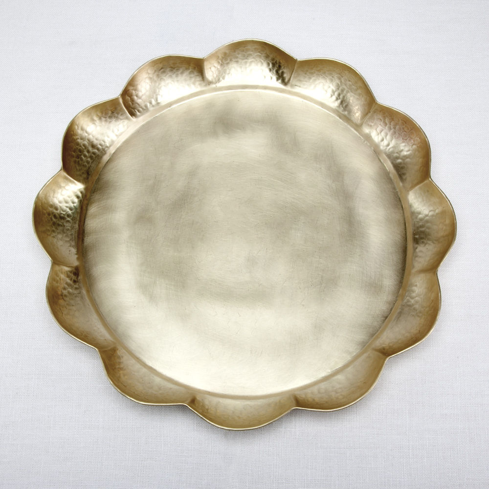 采用天然青铜圆形功能托盘,为Amorata系列制作,带有异想天开的柔软扇形边缘细节。 手工雕刻的这款托盘具有丰富的有机感,非常适合餐桌中心件或工作台面。