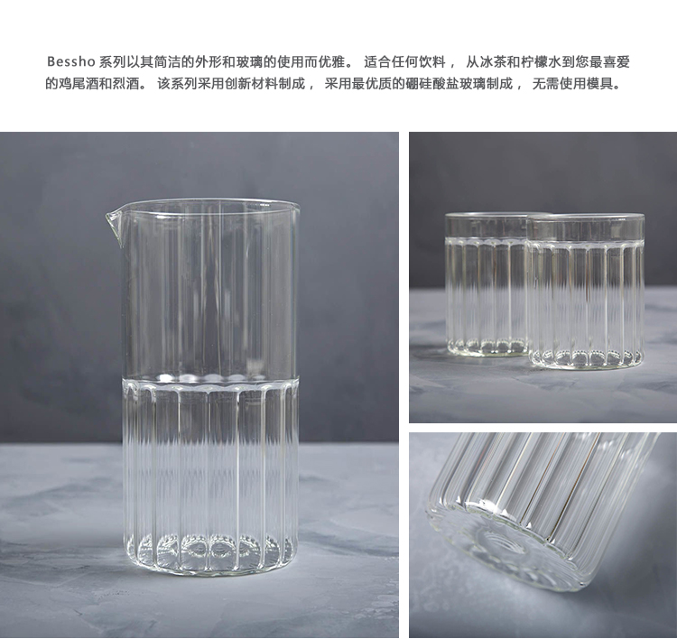 正如小镇以其温泉的治疗特性而闻名,我们与好朋友共度的夜晚也是如此。 Bessho系列以其简洁的外形和玻璃的使用而优雅。 适合任何饮料,从冰茶和柠檬水到您最喜爱的鸡尾酒和烈酒。 该系列采用创新材料制成,采用最优质的硼硅酸盐玻璃制成,无需使用模具。