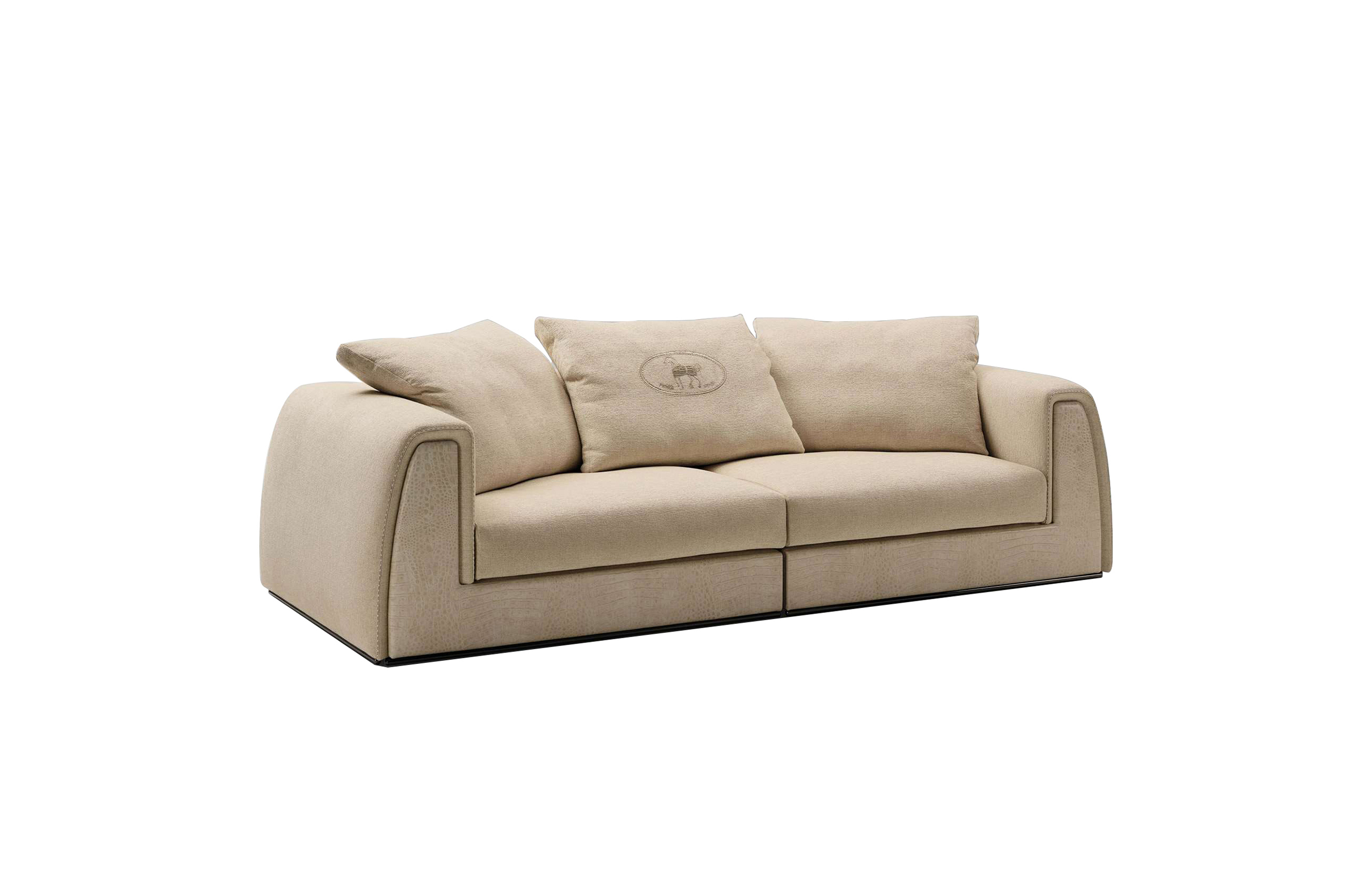 Frontal cover available also in fabric or printed leather (see price for component on the price list). Fabric or leather piping on armrests