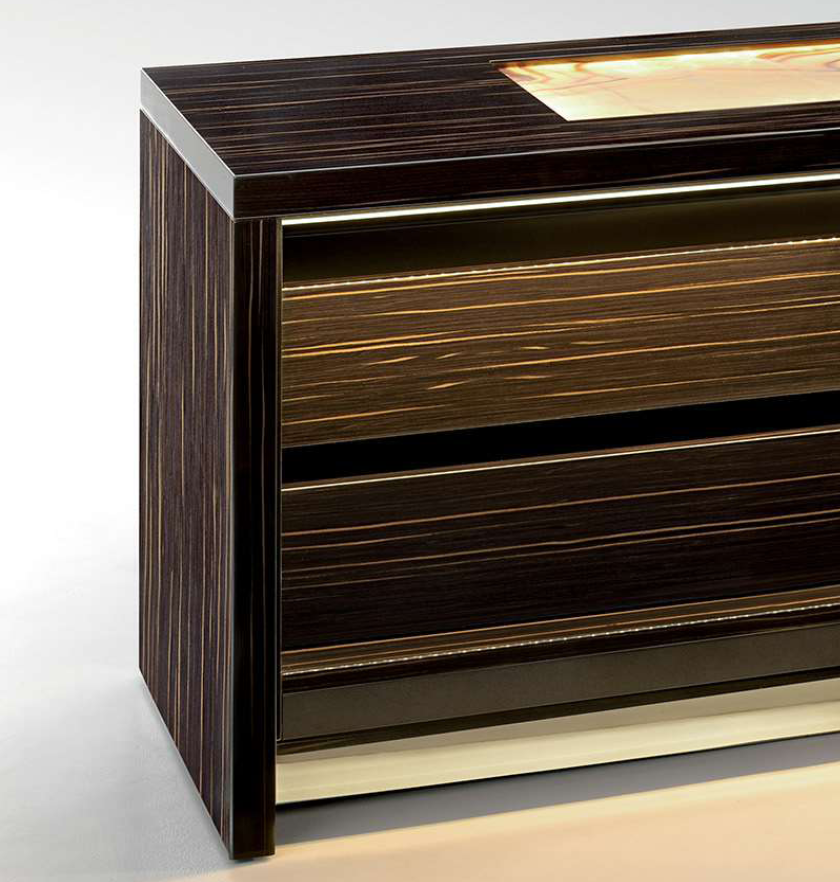 DRAWERS Version with nr.2 internal drawers (on the left side) with coordinated frontal cover. Inner drawers matt lacquered and covered in microfibre