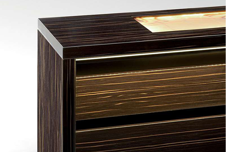 FRAME / SHUTTERS Wood veneered Ebony Macassar, Erable or lacquered with glossy lacquered brushed finishing. Wooden coplanar shutters coordinated with the frame