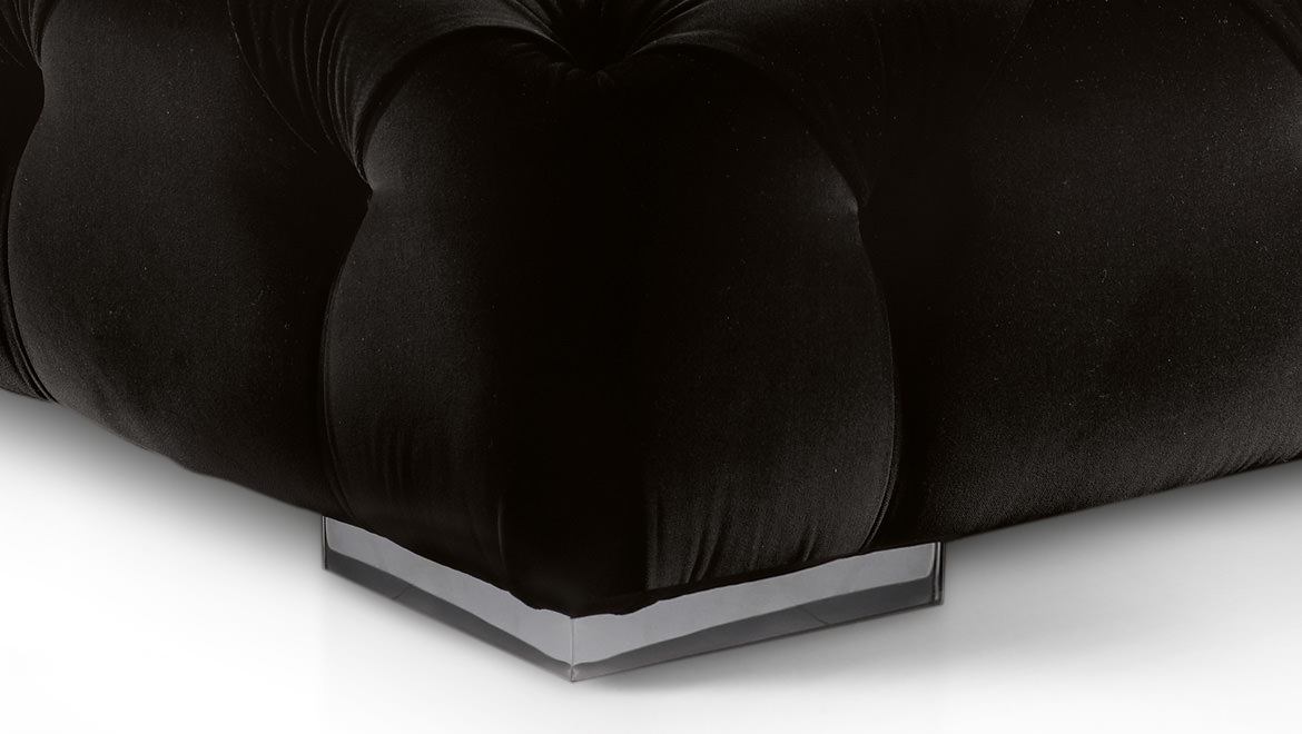 FEET Steel corner feet with polished chrome, gun-metal grey or Bronze Shadow finishing, Plexiglass feet.
