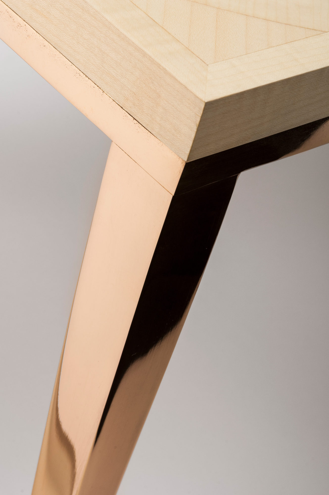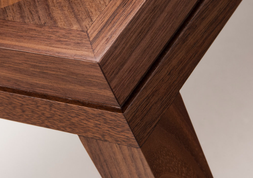 手工铺设的径向同心圆形对比色调和美国梧桐切割在坚实的抛光青铜腿上,这款特别版的Catalyst咖啡桌远远望去,而坐在附近则是错综复杂的美丽。