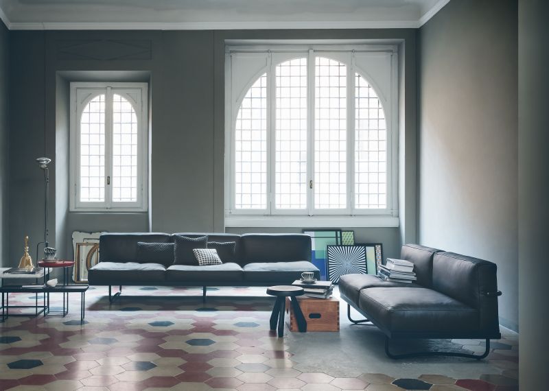 这款沙发拥有抛光三价镀铬(CR3)钢质框架,哑光灰、亮蓝、绿色、咖啡色、大地色、象牙白或黑珐琅漆面钢结构。