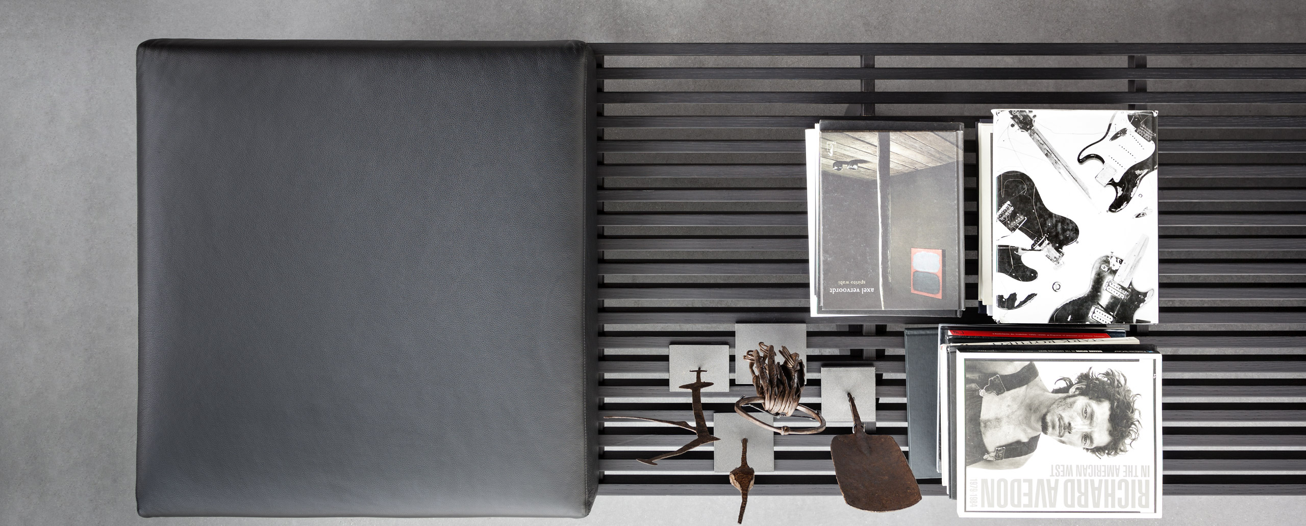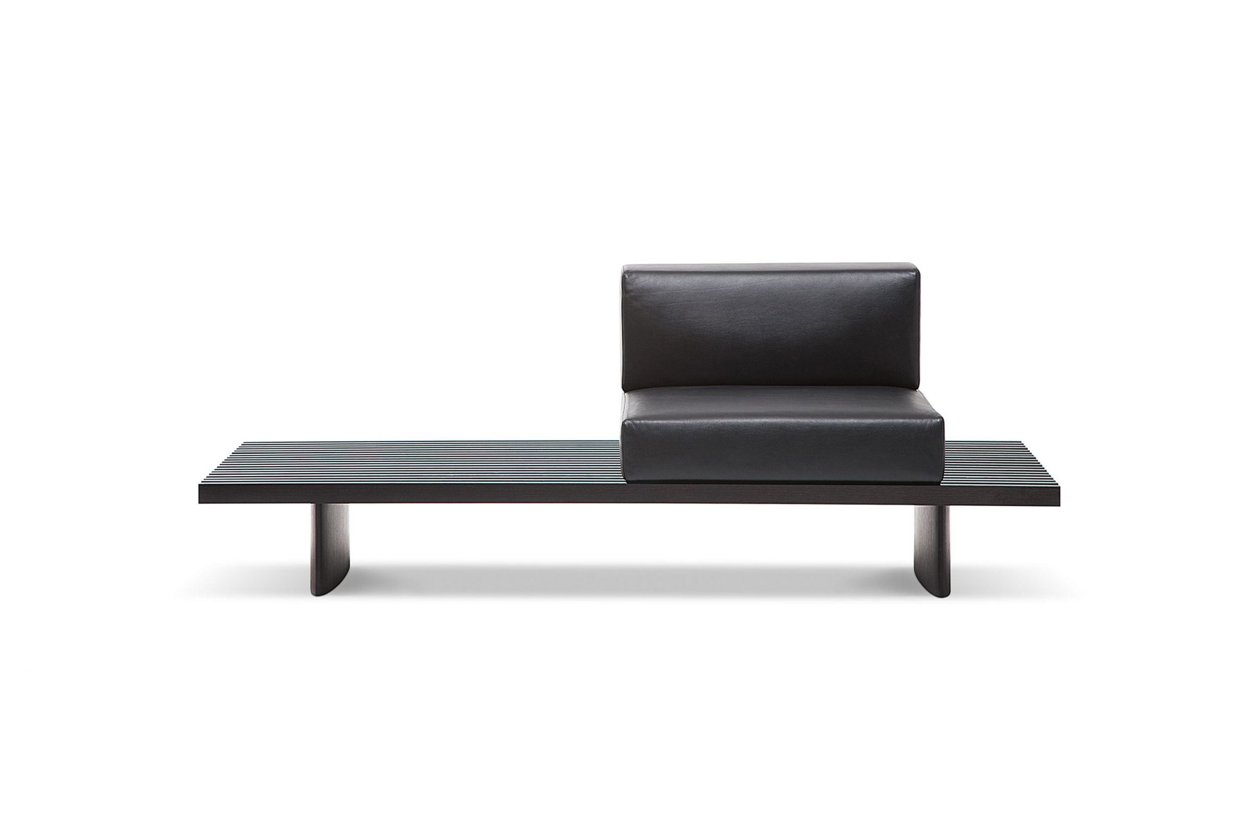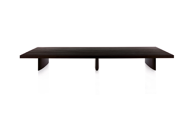 用作矮桌、长凳或和只需配备靠垫就能成为软榻的模块化系列。框架采用天然木色或黑色橡木。表面由19根板条组成;采用两条或三条支腿。软垫采用聚氨酯纤维和喷胶棉填充,用于扶手、座面,配对软垫: 一个座垫和一个靠垫。使用简单的固定装置就可将软垫固定于框架上。软垫可自由定位于表面的任何部分;因此,可使表面按照所需的尺寸用作座椅底座或顶面。