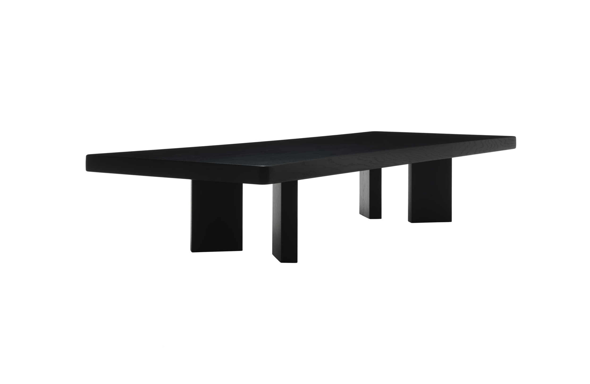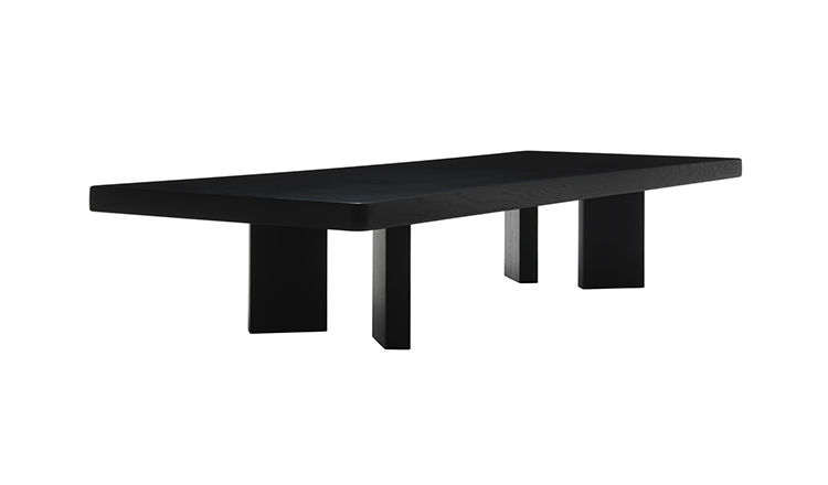 采用哑光黑色的珍贵木材或黑色实木橡木或美国黑胡桃木制造的矮桌。桌面厚度和凹面刻画了正式用语中的模型特征,并创造了令人讶异的轻盈感。该款矮桌是于1969年为日本驻巴黎大使馆设计的,这款咖啡桌是技术和中继合成的胜利。