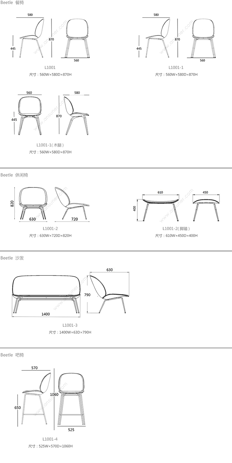 Beetle 餐椅 系列尺寸/示意图