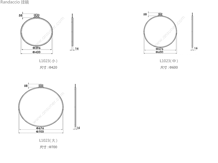 Randaccio 挂镜 系列尺寸/示意图