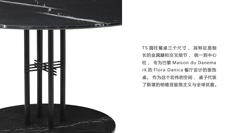 由GamFratesi设计的独家TS系列最初是为哥本哈根着名的The Standard餐厅设计的。 桌子的名字不仅从古老的海关中获得灵感,而且还有美学和材料选择。 对比坚固的桌面与细长的金属底座有很强的参照建筑的结构,并在网站上找到了材料。