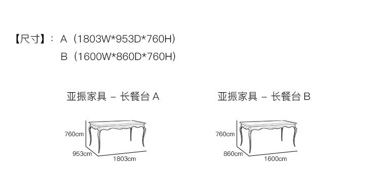 亚振家具 - 长餐台 产品尺寸/示意图
