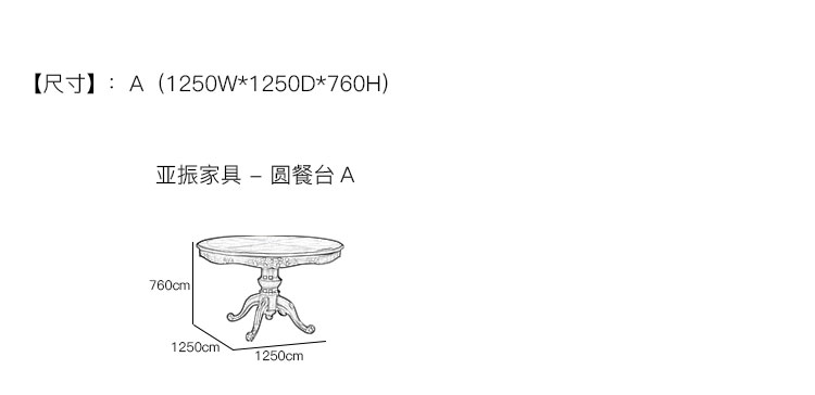 亚振家具 - 圆餐台 产品尺寸/示意图