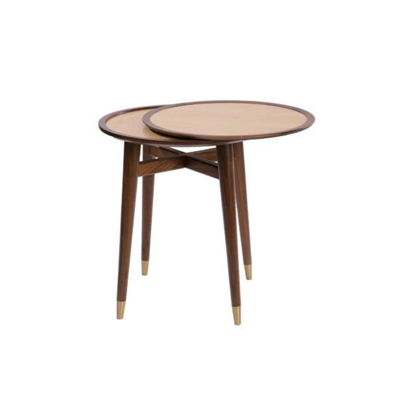 边几风格为后现代风格。边几的脚部与餐桌相得益彰。采用胡桃木制作,托盘为枫木材质。顶部的托盘为可移动茶盘,使用功能性强。